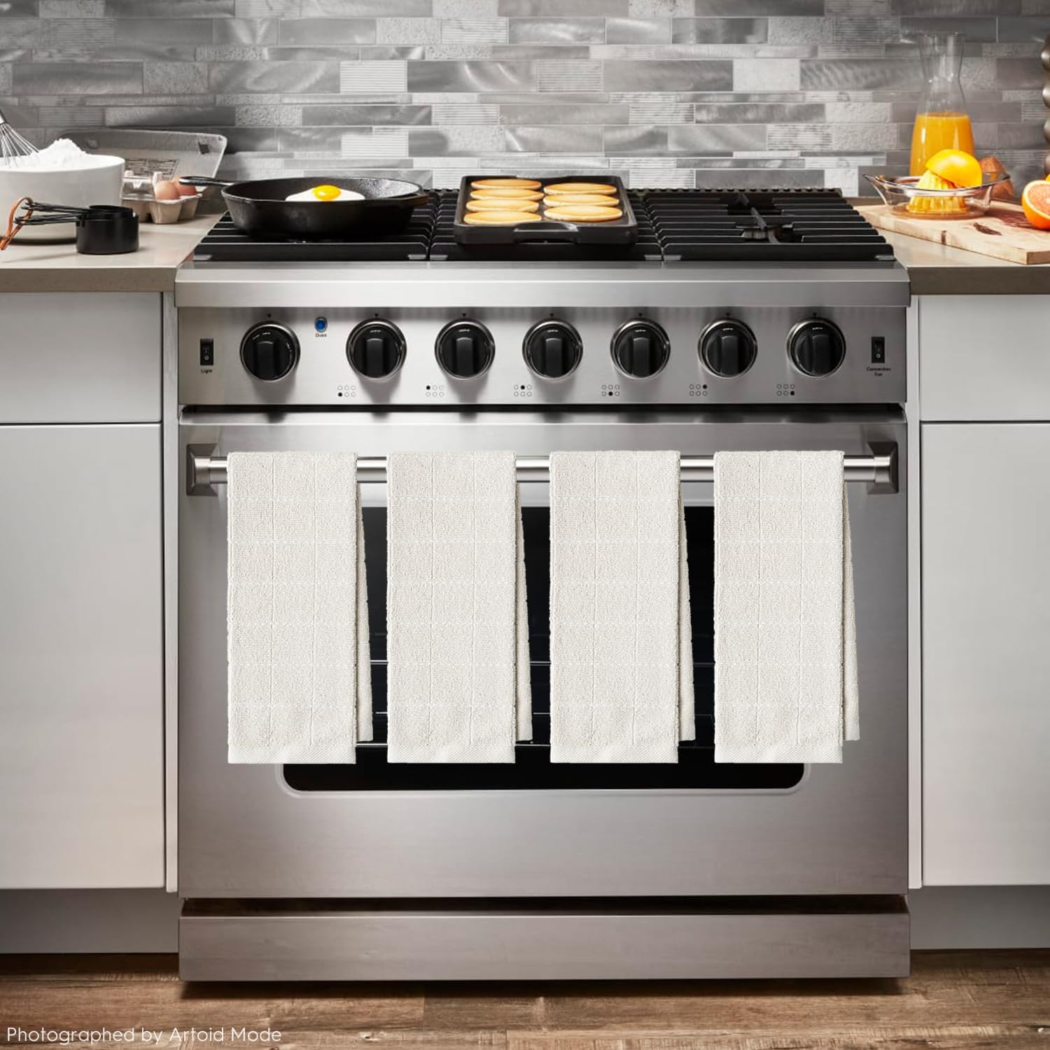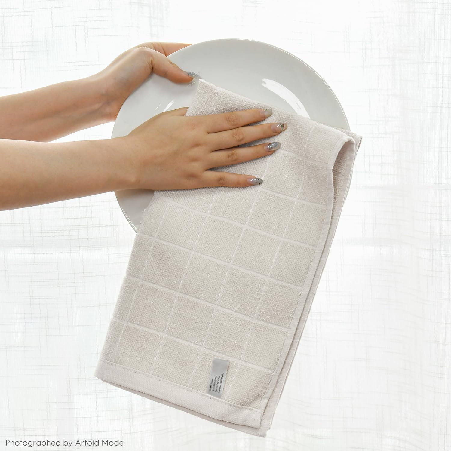 Artoid Mode Checkered Designed Cotton Beige Terry Kitchen Dish Towels, 15x25 Inch Soft Absorbent Quick Drying Family Cleaning Tea Towels Set of 4