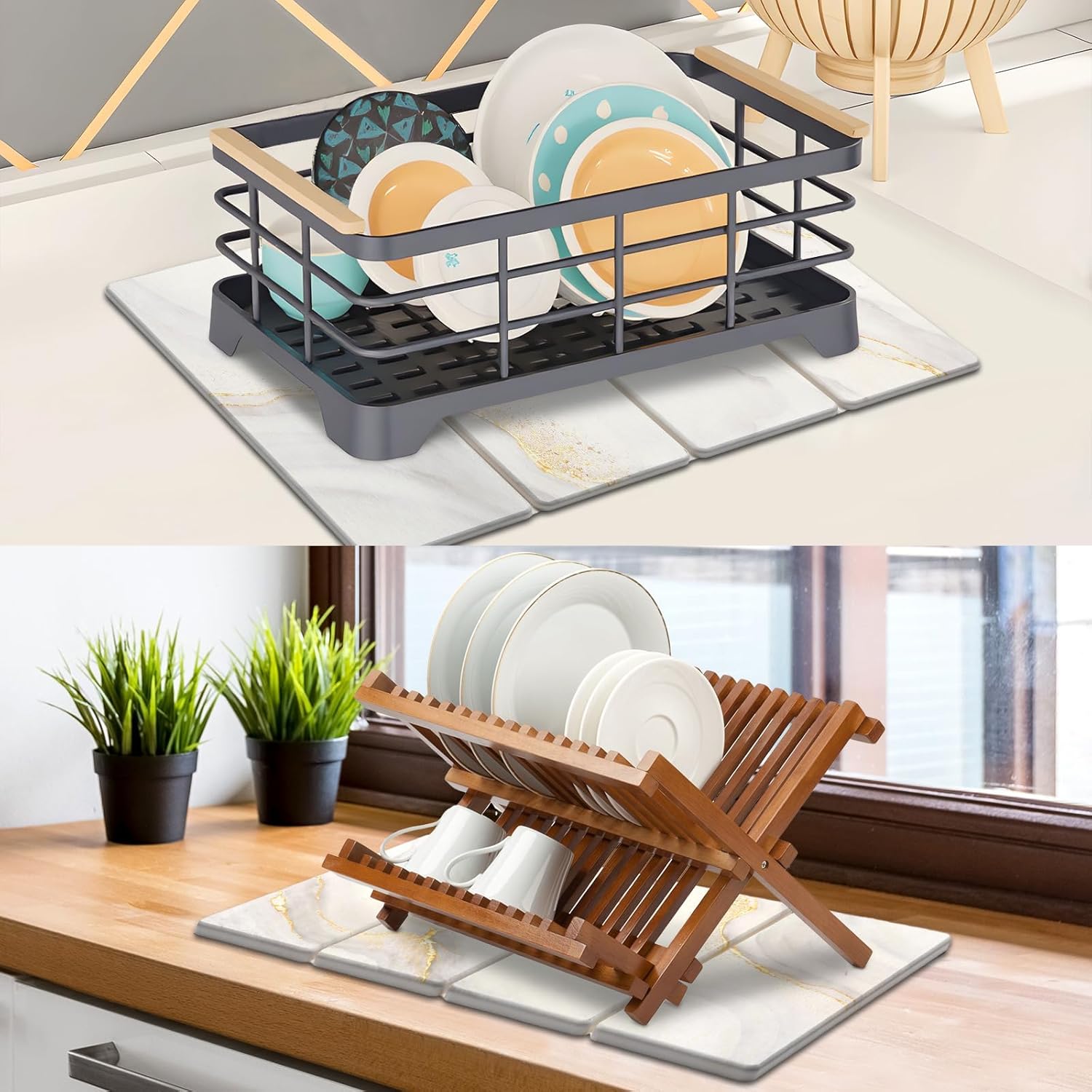- 【Multi-Use Functionality】More than just a stone dish drying mat, this set suits a wide range of uses. Use it under dish racks, next to the sink, under pet bowls, or even in the bathroom for toiletries. The large stone dish drying mat is ideal for drying dinnerware, coffee mugs, baby bottles, and more, making it a reliable part of your daily kitchen stone drying mat setup.