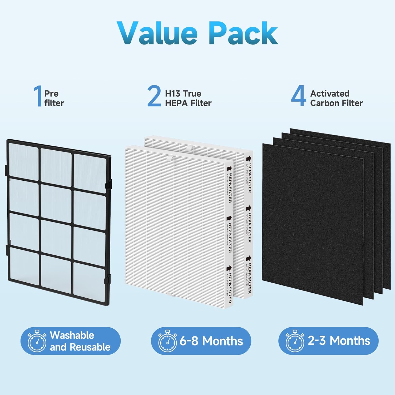 - Complete Maintenance Package:1 washable fine mesh pre-filter+2 Premium filters (annual replacement) + 4 carbon filters (biannual renewal) ensuring uninterrupted air purification