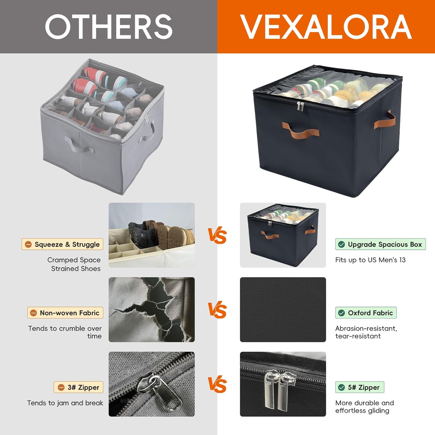 - 【Sturdy & Reinforced Structure】Made of tear-resistant Oxford fabric, which is more durable than non-woven fabric, the sides and bottom are supported by sturdy, thickened cardboard to provide a robust structure that won't collapse over long-term use