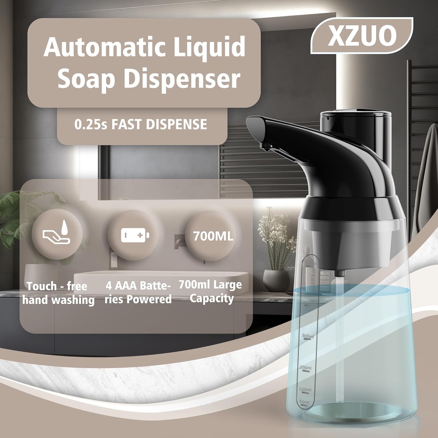 Automatic Soap Dispenser Touchless, 23.7 oz/ 700 ml, Low Battery Liquid Soap Bottle with Motion Sensor for Bathroom & Kitchen (Black-Battery)