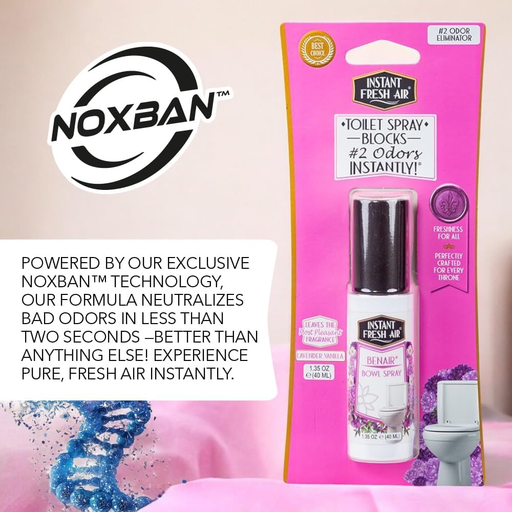 - Instant Odor Elimination: Experience rapid relief with our 2-pack: superior toilet spray. Our advanced Noxban Technology acts as a pooph odor eliminator, neutralizing toilet odors in under 2 seconds. An essential for cleanliness enthusiasts and families looking to keep bathroom smelling good.