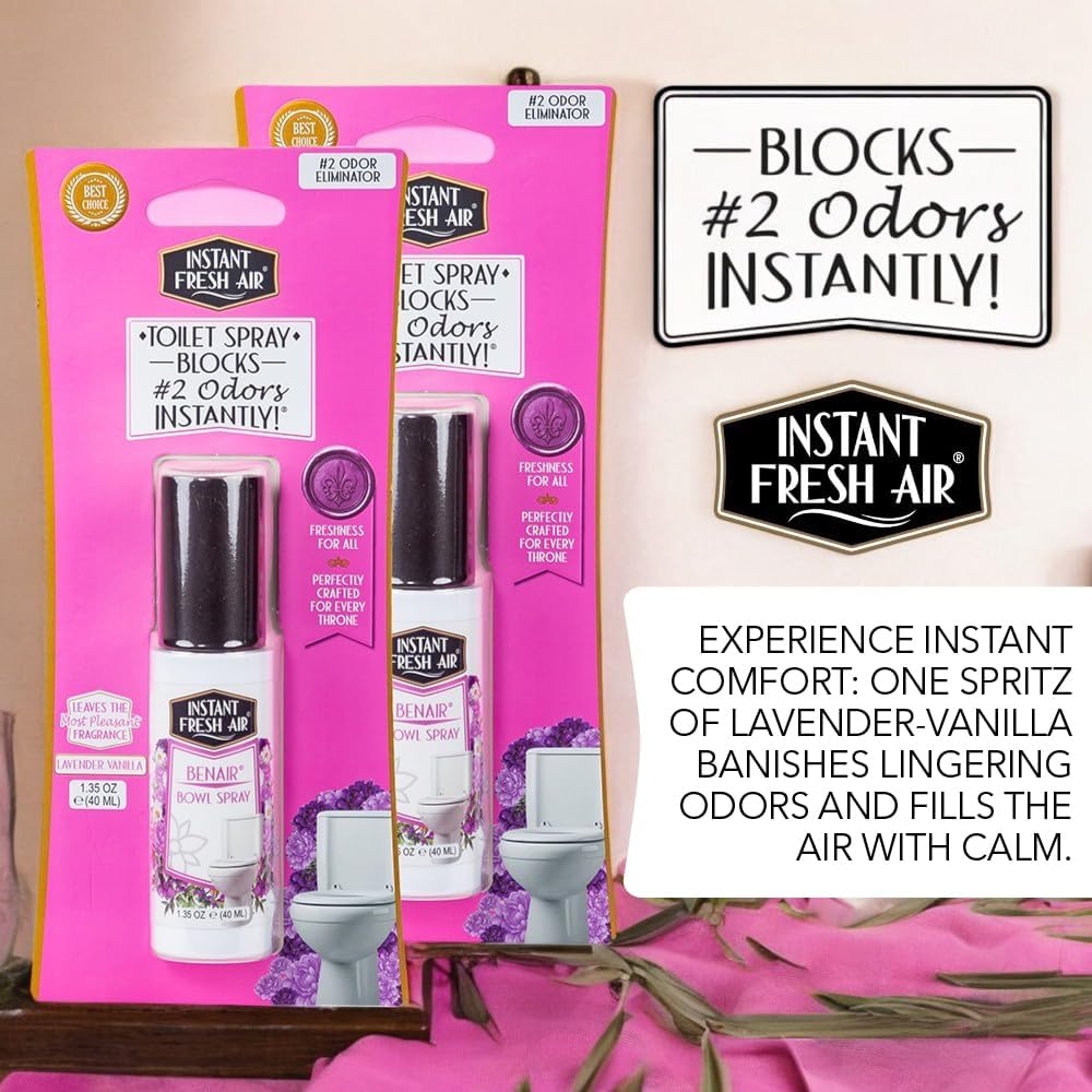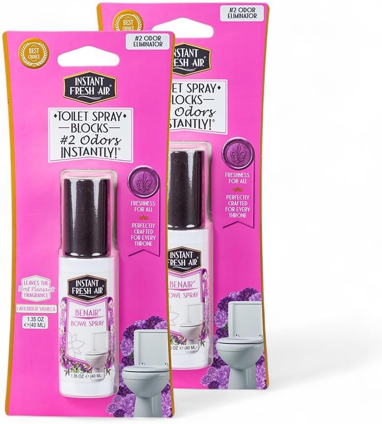 2-Pack: Superior Toilet Spray with Instant Odor Elimination, Lavender Vanilla Fragrance, Odor Eliminator Bathroom Spray, Travel Size, Long-Lasting, Eco-Friendly, 1.35 Oz. - INSTANT FRESH AIR