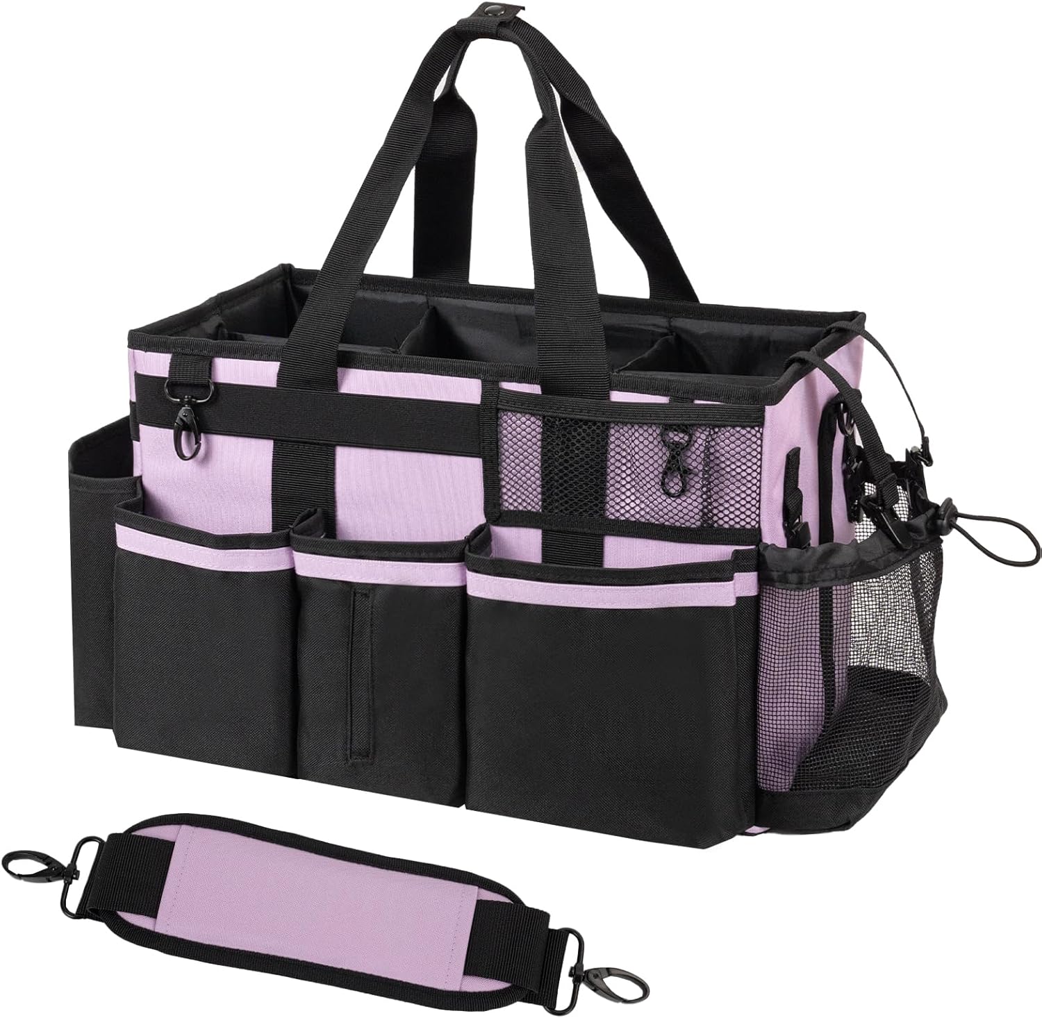 Wearable Cleaning Caddy, Cleaning Caddy Supplies Organizer with Handle & Shoulder Straps for Housekeepers, Under Sink & Car Cleaning Tool Organizers Bag with 4 Foldable Divider (Lilac)