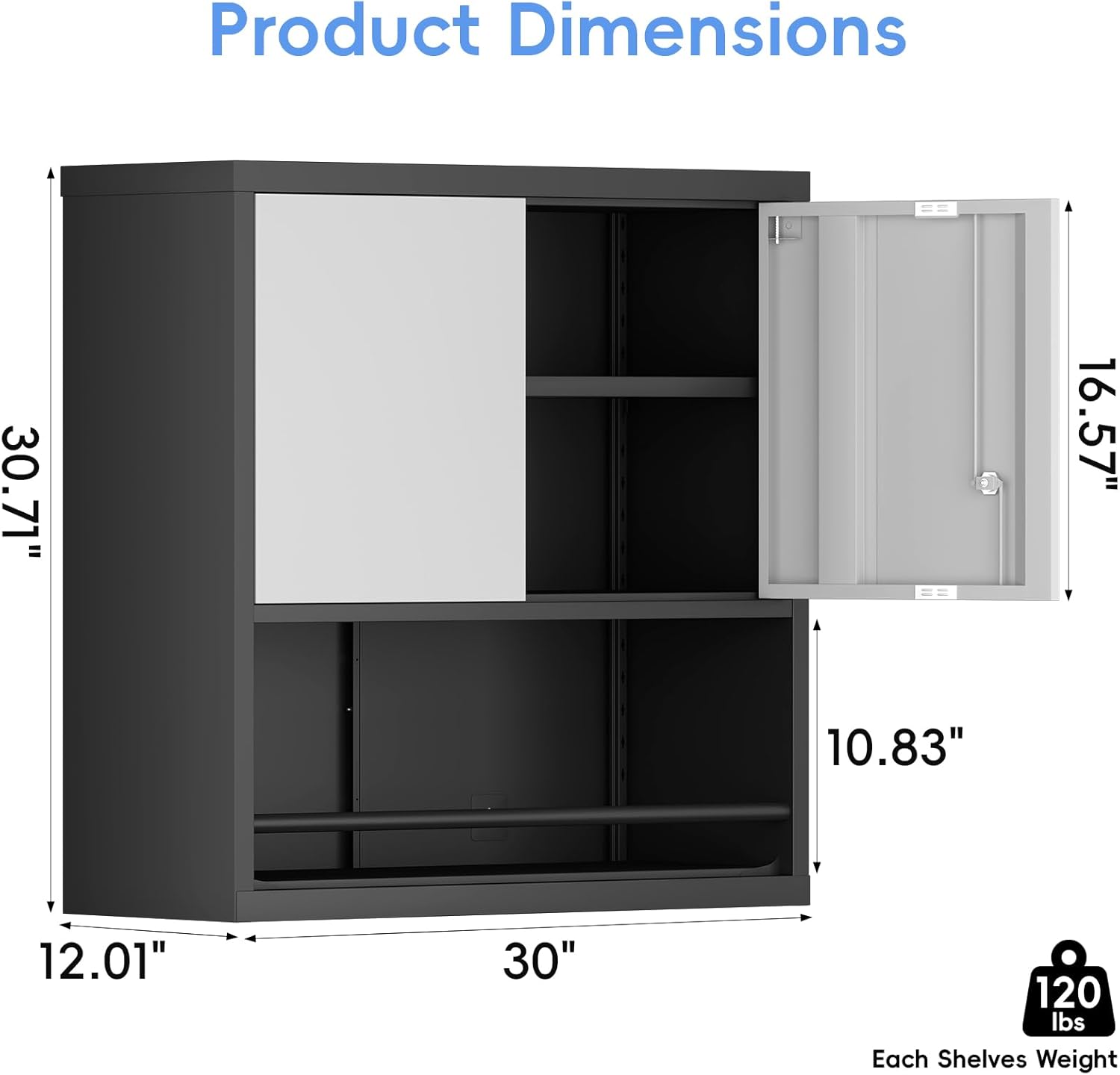 - [Durable and Space-Saving Design] Made from high-quality steel, this wall cabinet is built to last. Its compact design makes it ideal for tight spaces while offering generous storage capacity.