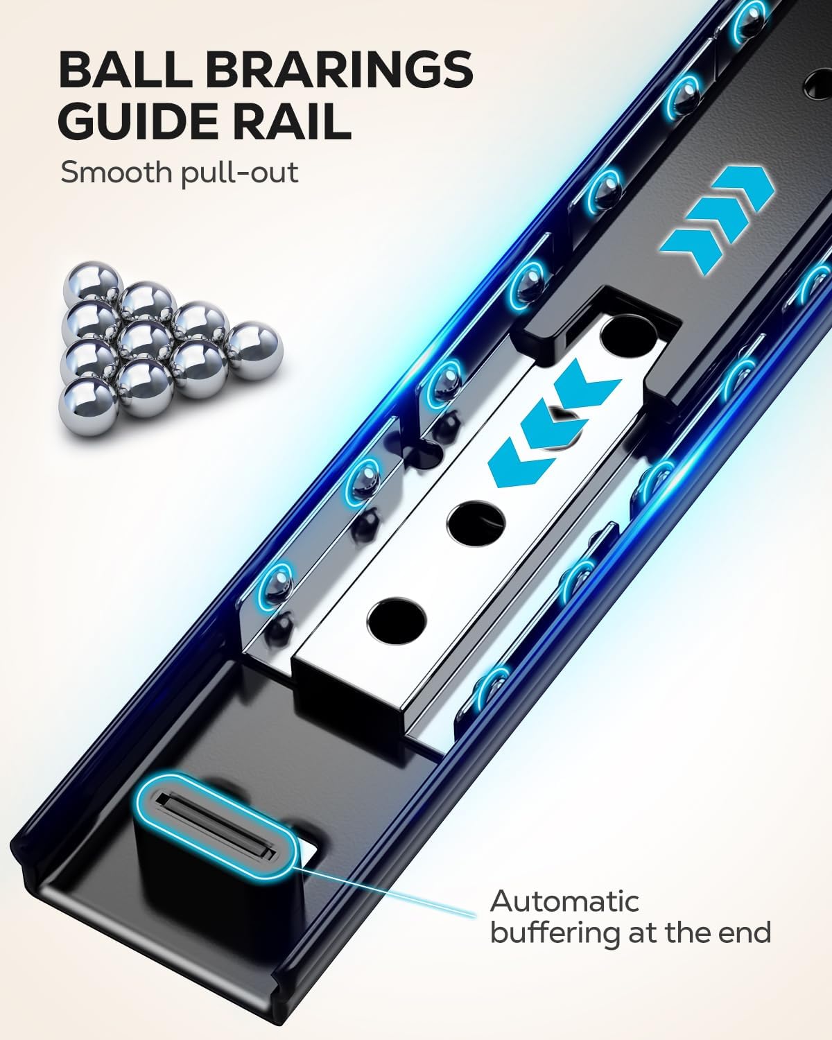 - BALL BRARINGS GUIDE RAIL--Smooth pull-out, automatic buffering at the end.