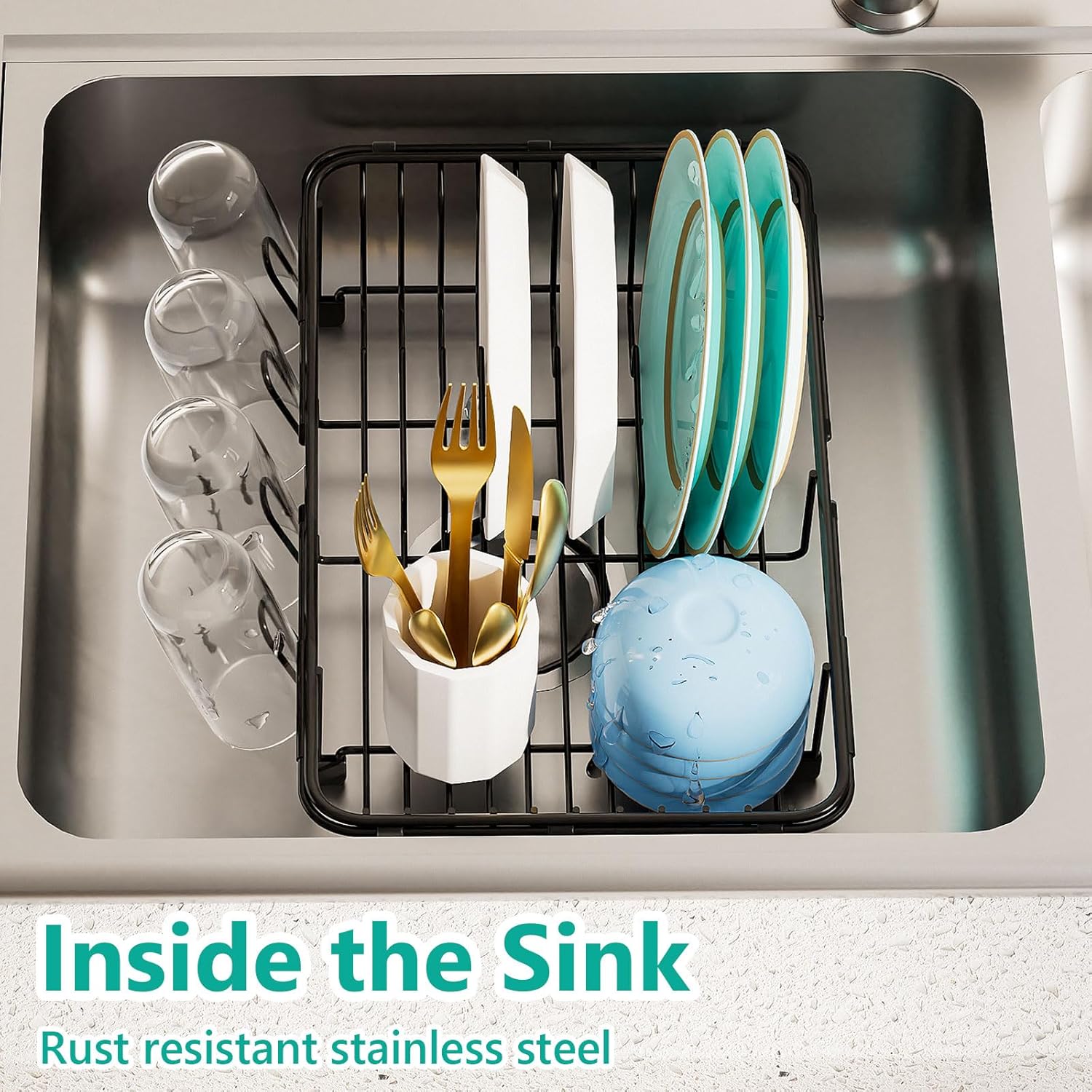 - Frees Up Counter Space: In sink drying rack allows you to air dry your dishes directly over the sink and not use up small counter space in kitchen