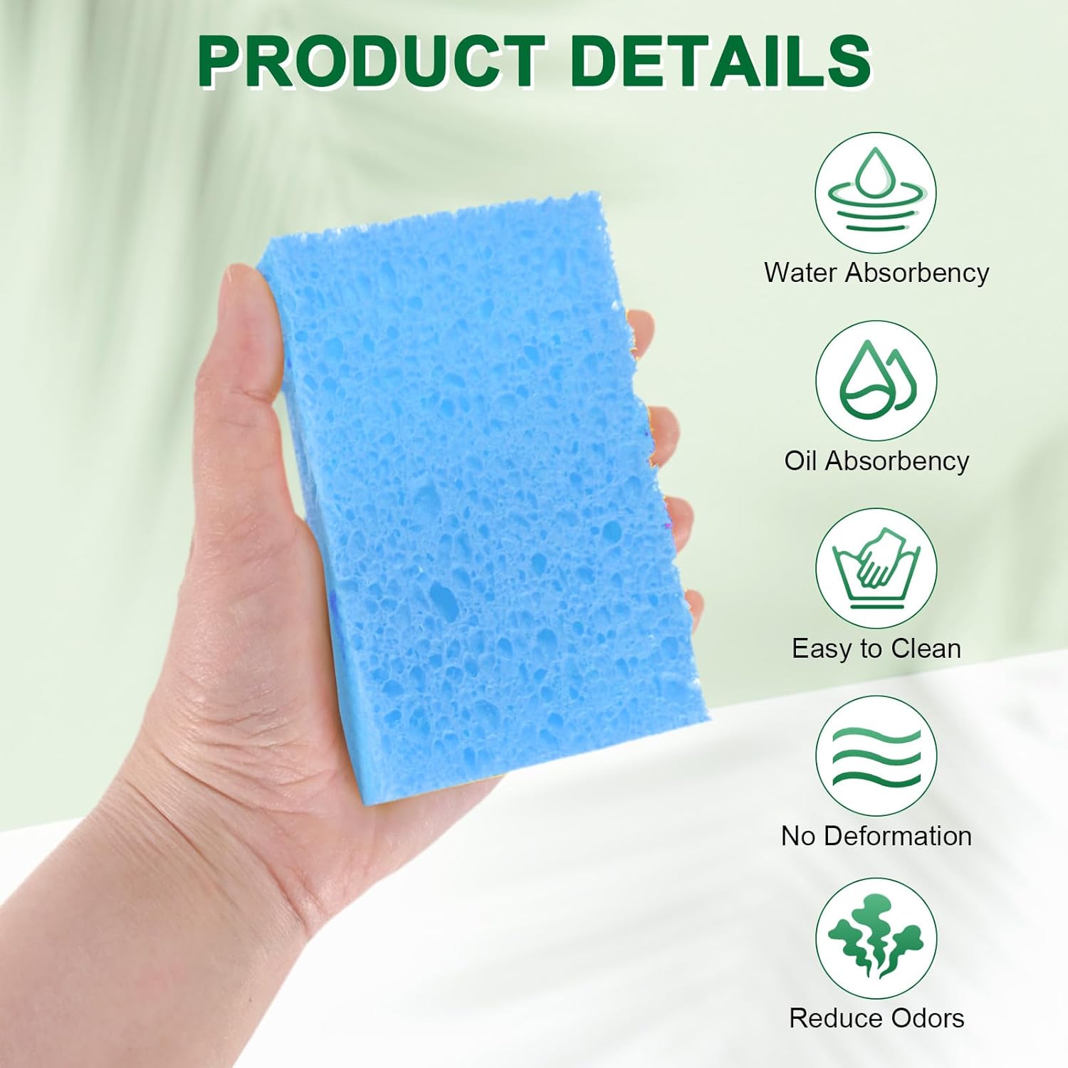 - [Durable Sponges] - The sponge is made of wood pulp fiber material, has good water absorption and oil absorption properties, is easy to clean and rinse without deformation, improves cleaning efficiency, and reduces odor