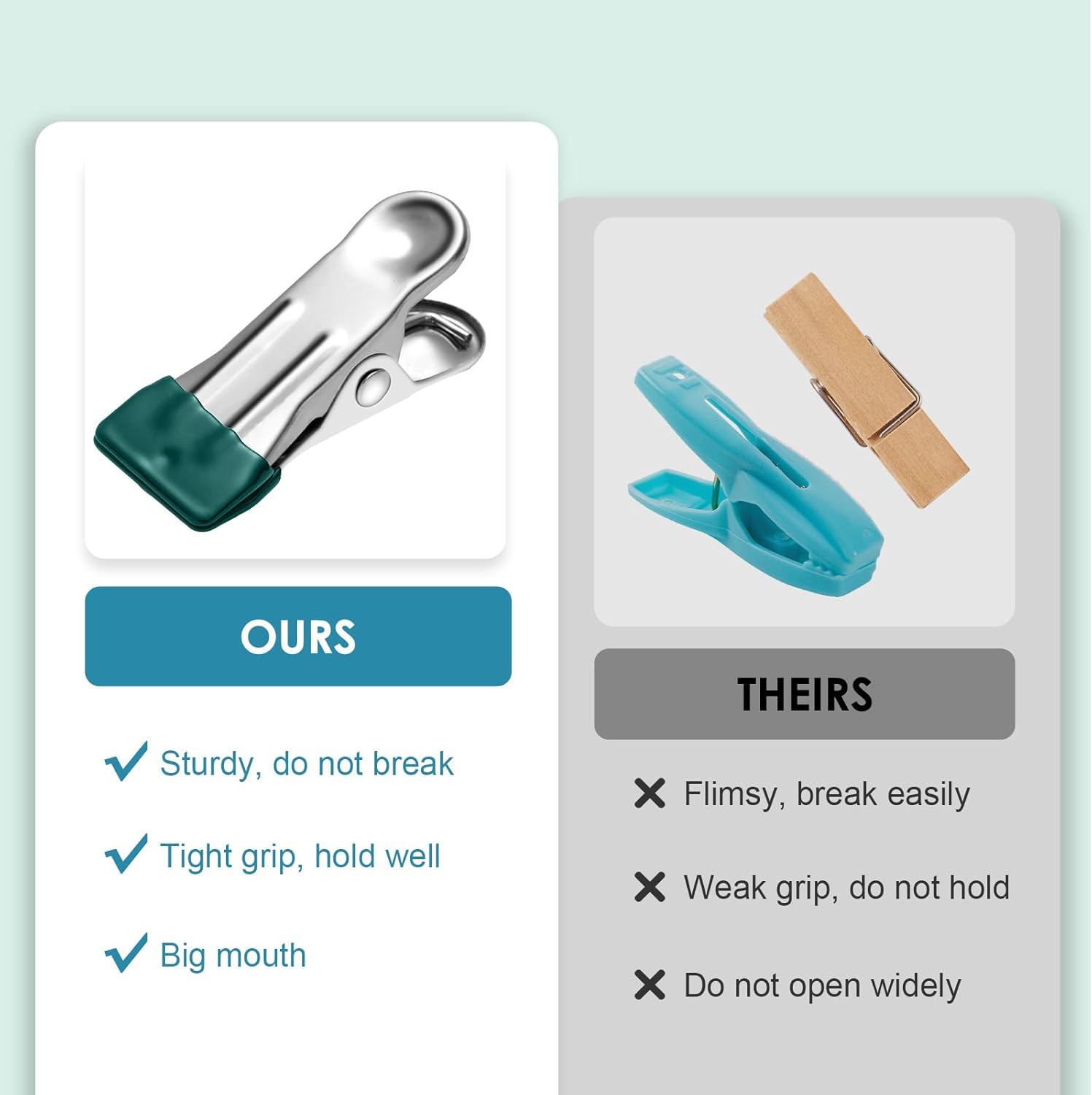 - Versatile & Multipurpose: These clips are not just for clothes! Use them as photo clips, chip bag clips, snack holders, or even office paper organizers. Perfect for the laundry room, kitchen, office, or while traveling, offering versatility for various daily tasks.