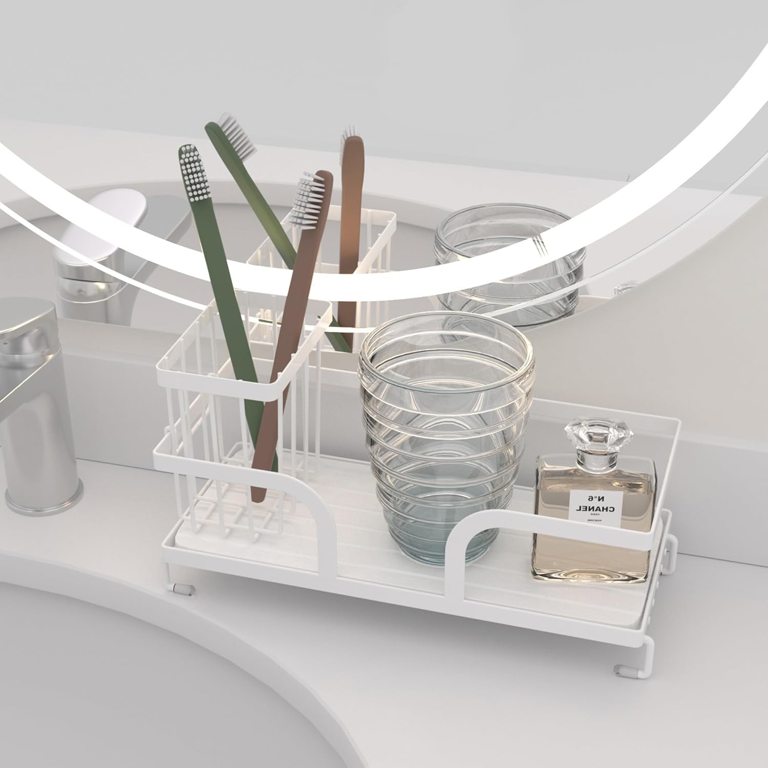 Bathroom Counter Organizer,Perfume Tray,Stone Drying Mat for Kitchen Counter,9.7" x 4.2"x 3.2", Ideal for Bathroom Organizers and Storage, Vanity, Skincare, Present, and More,1PCS White