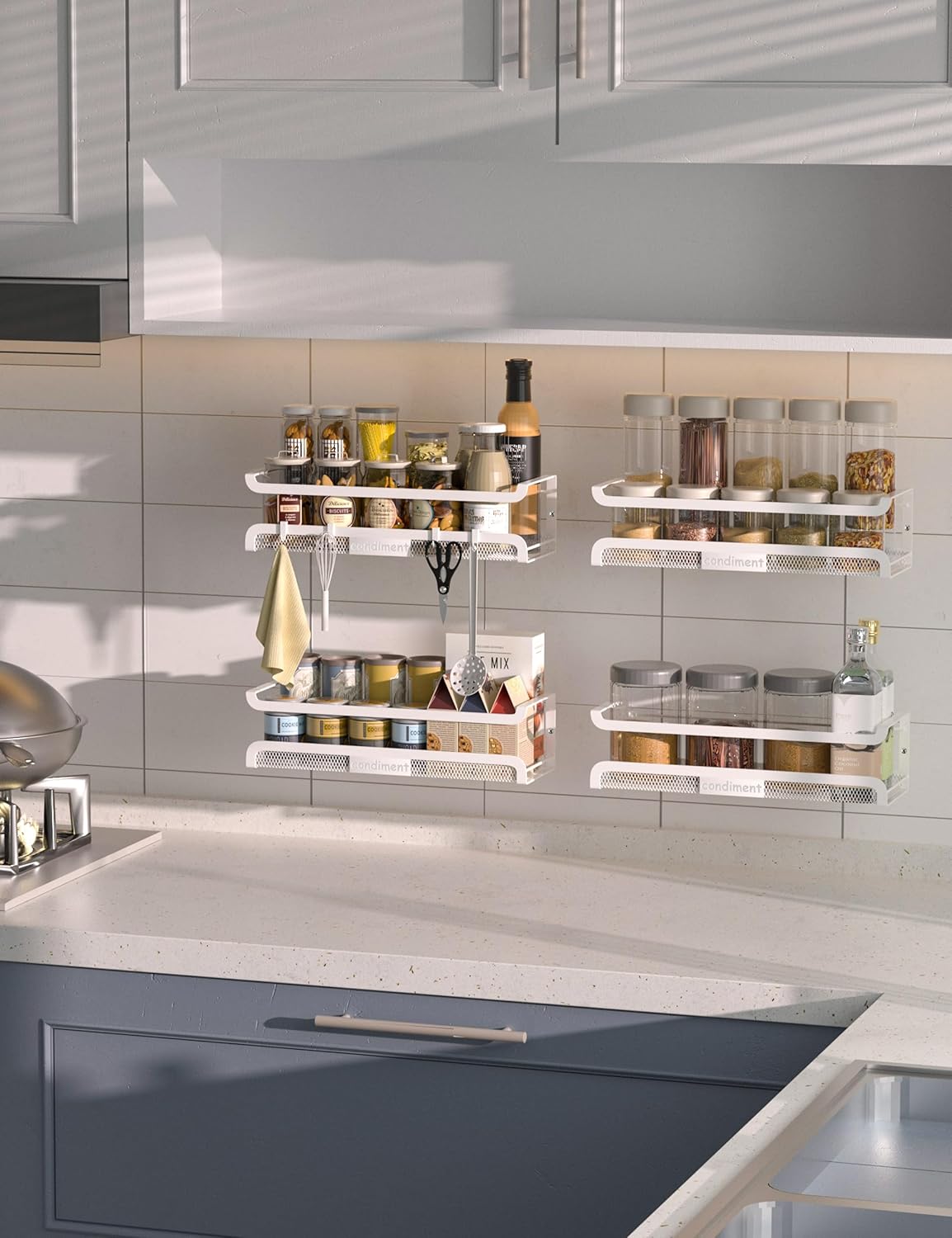 - 【Large Capacity】- 11.81x3.94x3.15 inches. It's a wonderful seasoning organizer, easily free up more space for you, with no more clutter in your house and kitchen.Suitable for spices, salt, pepper, sugar, cooking oils, etc. This multifunctional storage rack can also be used in bathrooms, pantries, doors, cabinets.