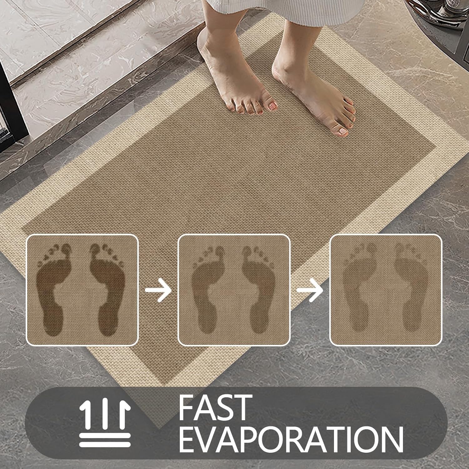 - 【Absorbent & Quick-Dry】Crafted with diatomaceous earth, this mat can absorb up to 1.9 gallons of water per square yard, making it perfect for high-moisture areas like bathrooms. Use it as an entrance mat to protect your floors from water damage, dirt, and debris, ensuring a clean and dry living space
