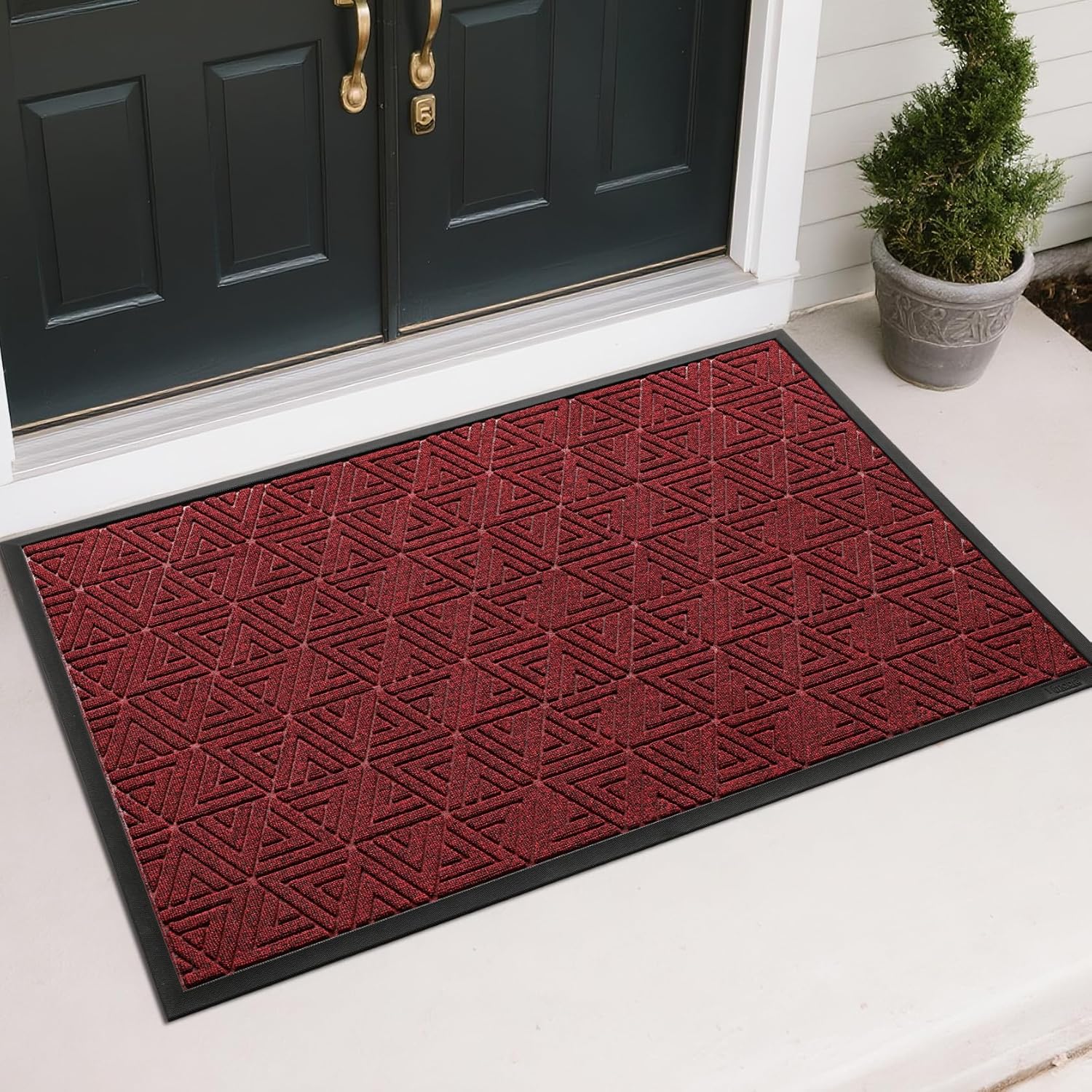 Yimobra Large Door Mat 47x32, All-Weather Waterproof Non-Slip Welcome Matt Outdoor, Heavy Duty Non Slip Doormat for Entryway for Patio and Garage Indoor, Easy Clean, Black Red