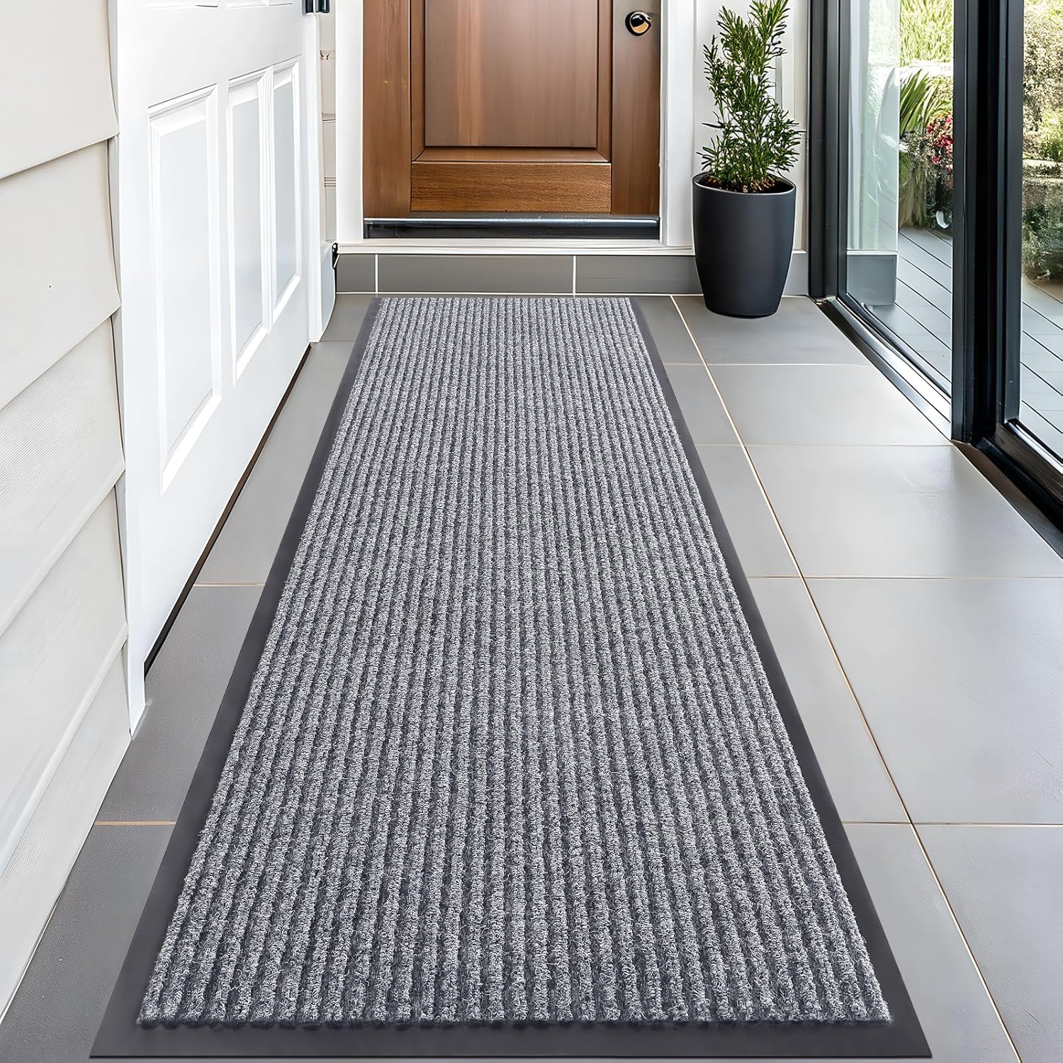 OLANLY Front Door Mat Indoor Outdoor Entrance, Waterproof Heavy Duty Doormat, Fade Resistant, Low Profile, Easy Clean Patio Porch Welcome Floor Mats for Entry, 59x20, Light Gray