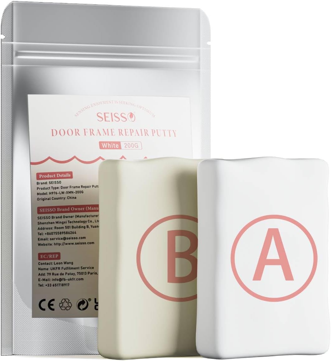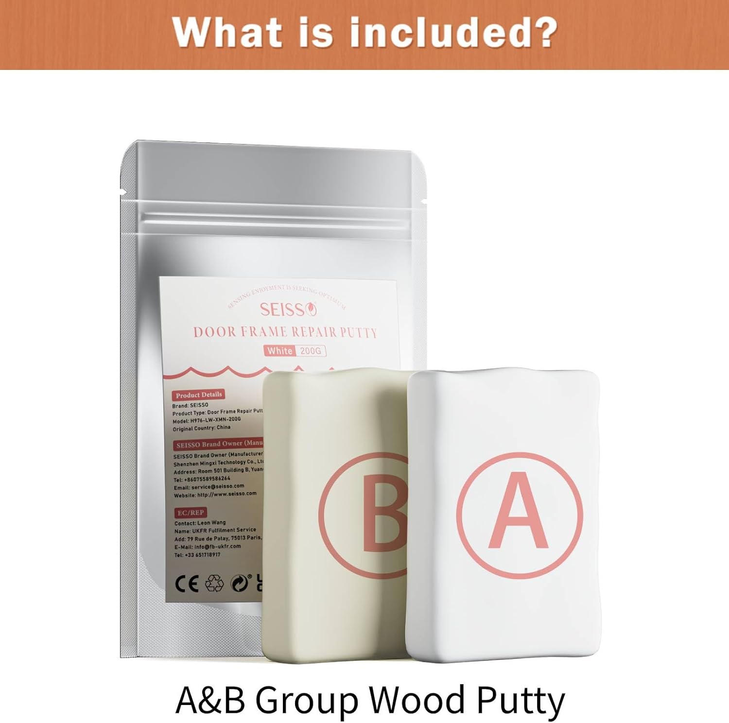 SEISSO Epoxy Putty Filler for Door Frame Repair, 200g/7.05 Oz Fast Repair AB Epoxy Putty, Wood Repair Putty for Cracks, Holes, Wooden Furniture, Cabinets & Composite Panels, Paintable & Stainable
