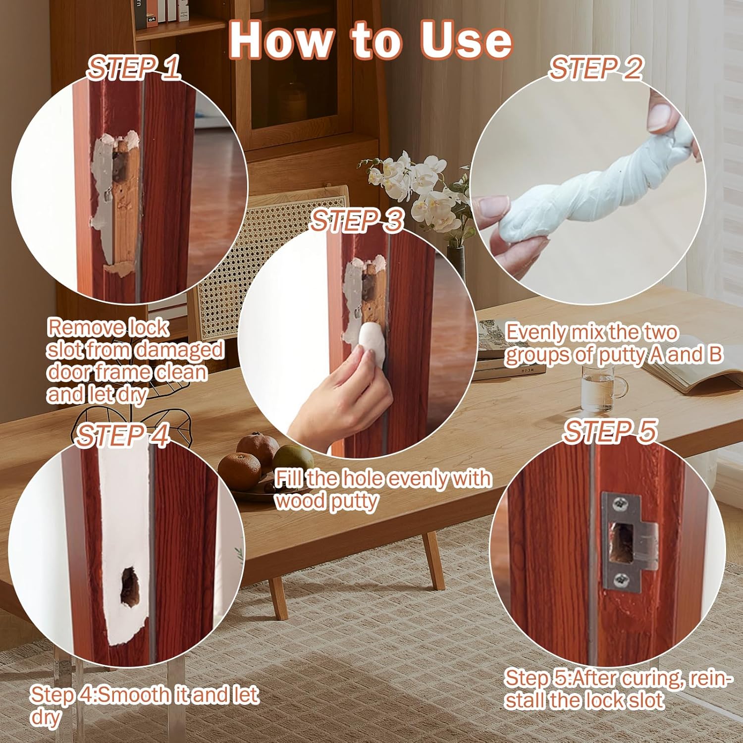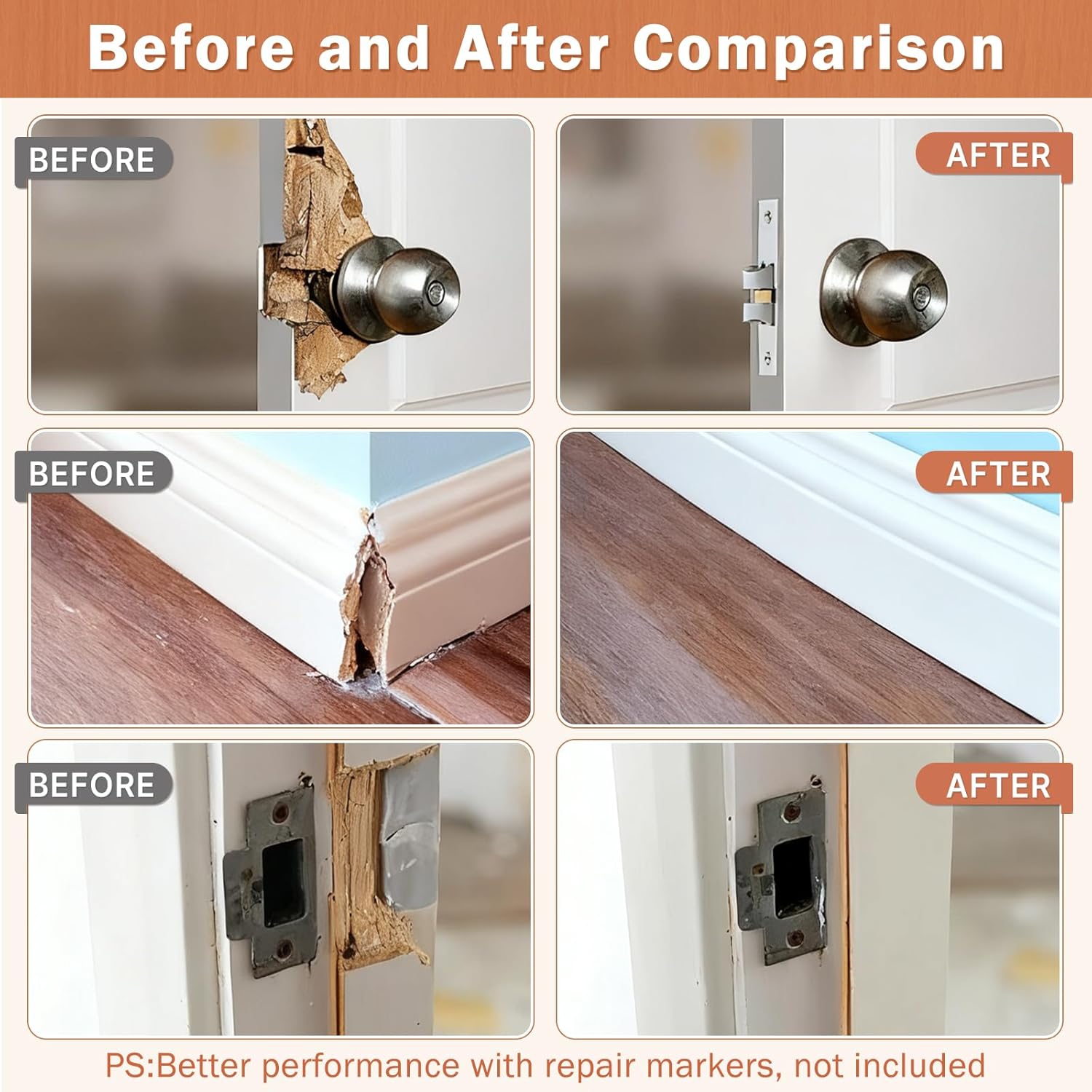 - 【Paintable & Stainable】 After curing, the filler can be sanded, painted, or stained to match any wood surface color, ensuring seamless integration with your wooden furniture or doors.