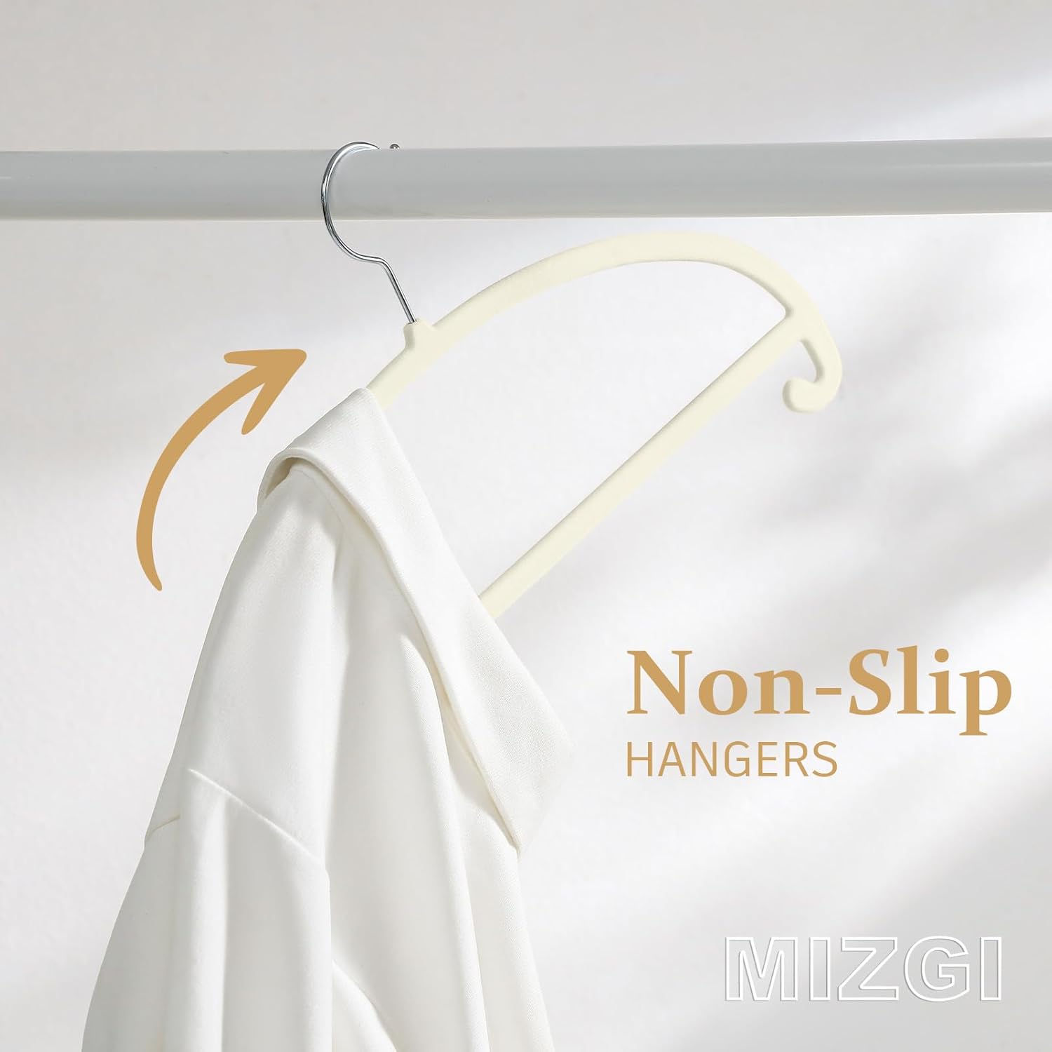 MIZGI 50 Pack Ivory Velvet Hangers - No Shoulder Bumps, Heavy Duty Non-Slip Chrome Hooks for Jackets, Coats, Pants