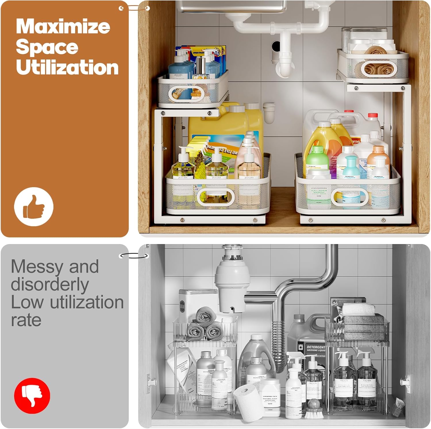 - 【Elegant Mesh Style,Refined Living】Designed with a graceful mesh structure,kitchen cabinet organizer is light,airy,and prevents small items from slipping—perfectly blending sleek and utility.