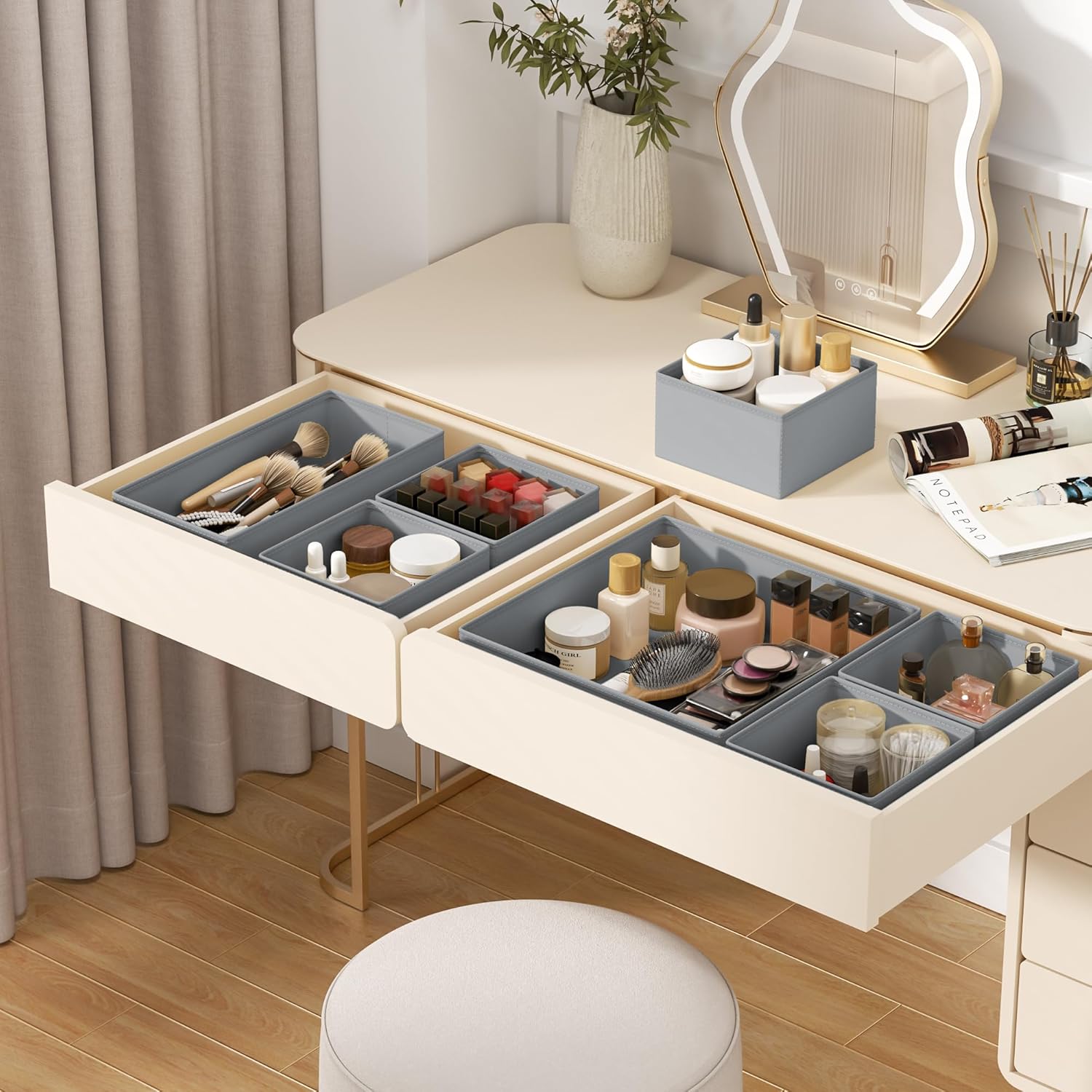 - Flexible Combination: This clothes organizer set includes 4 large square boxes (11.8" x 11.8" x 3.54"), 4 medium boxes (11.8" x 5.9" x 3.54"), and 8 small square boxes (5.9" x 5.9" x 3.54"), allowing for free combinations of 3 sizes for efficient and personalized organization. This dresser organizer is suitable for closets and other spaces