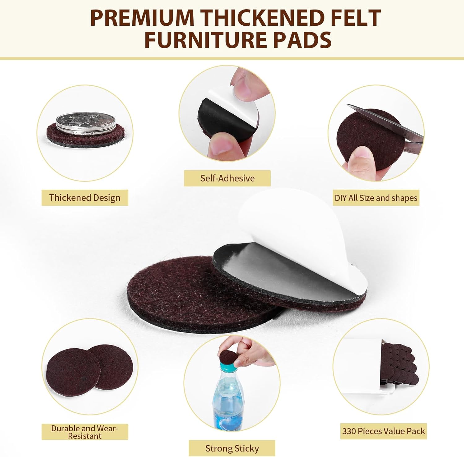 • ❤️【Value Pack】Get 330 pieces in one box—includes brown round and square pads in multiple sizes (0.375" to 6"). Everything you need for full home protection!