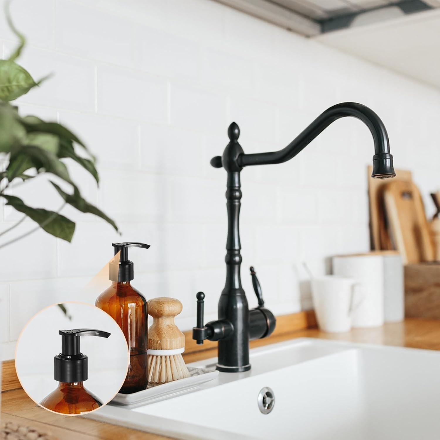 - [Function] - The plastic soap dispensers are suitable for various bottles (plastic, glass, ceramic, metal), used to dispense liquid soap, lotion, shampoo, dish soap, essential oils, etc.