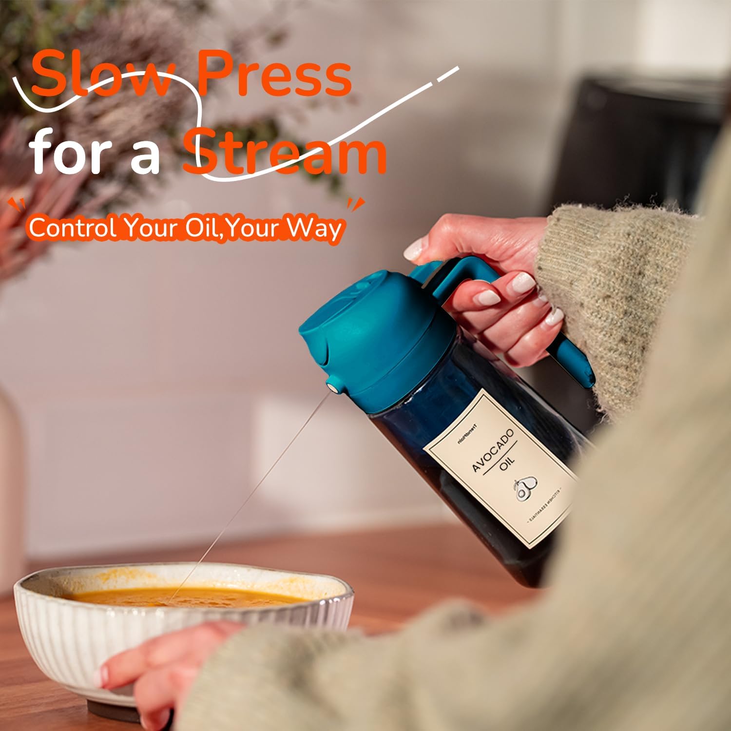 - Dual-Function: This 2 in 1 oil dispenser and oil sprayer offers both pouring and spraying capabilities, making it a versatile solution for your kitchen needs. Switching between the two functions is effortless, keeping your kitchen tidy and efficient