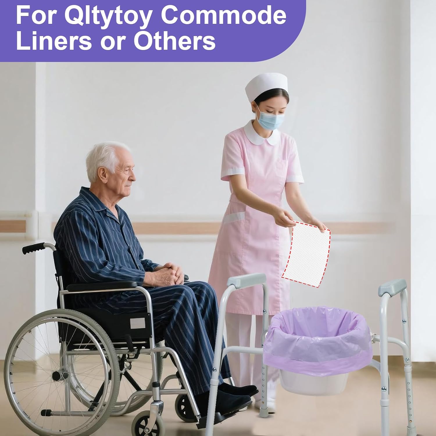 - 【Universal Fit for Commode Buckets & Most Potties】Each pack contains 100 count commode liner pads. Commode absorbent pads are universal fit for standard portable commode, adult potty chairs, portable toilet for adults, bedside commodes for seniors, or portable toilet for camping. The size of pads for bedside commode is 9.5*5 in.