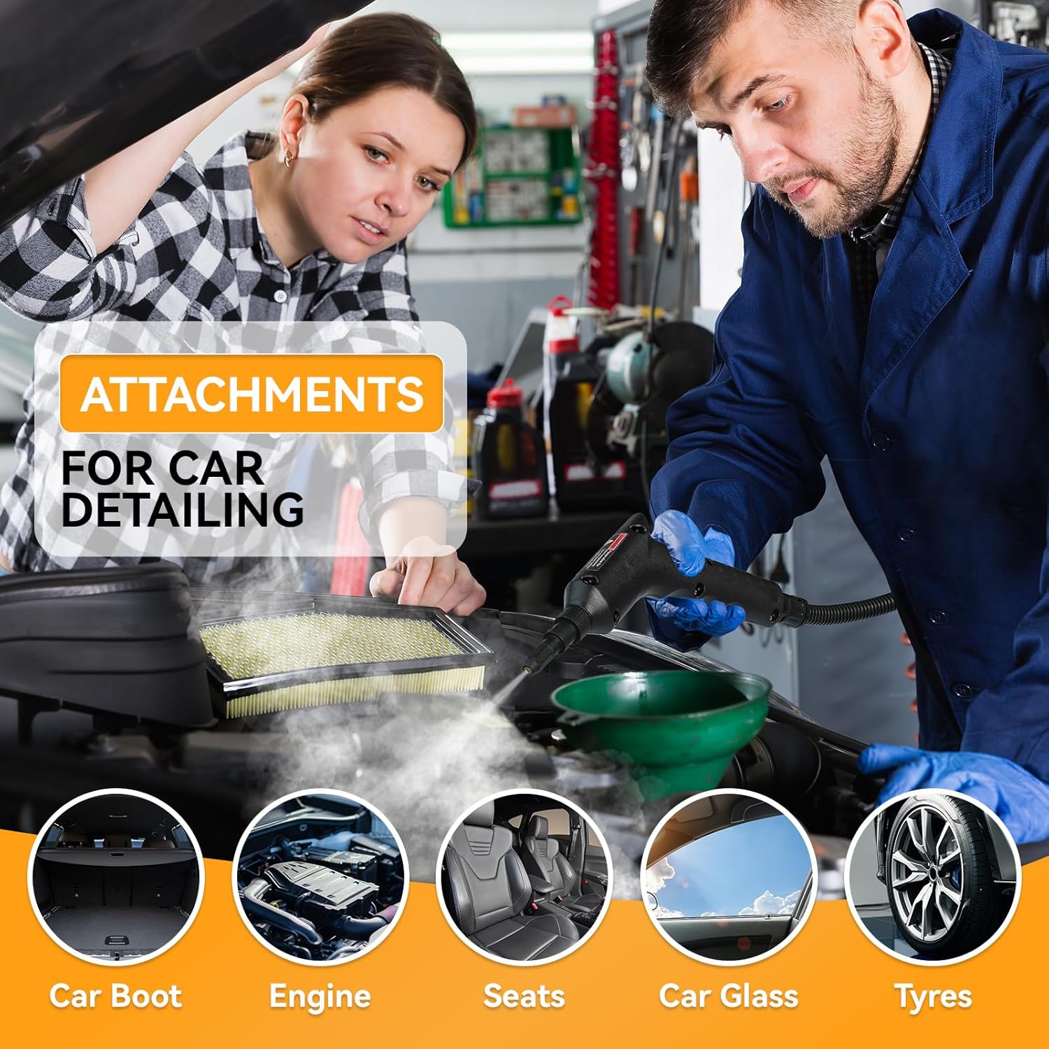 - Widely Usage: Steam Cleaner Handheld is ideal for homes, offices, and vehicles. It excels as a grout steam cleaner for tile floors, a steam cleaner for bathroom, or even a car steam cleaner. Whether refreshing furniture or surfaces, this steam buggy steam cleaner ensures deep cleaning. As a multipurpose steam cleaner, it suits hard floors, carpets, and upholstery, making Handheld Steam Cleaner a versatile tool for all spaces.