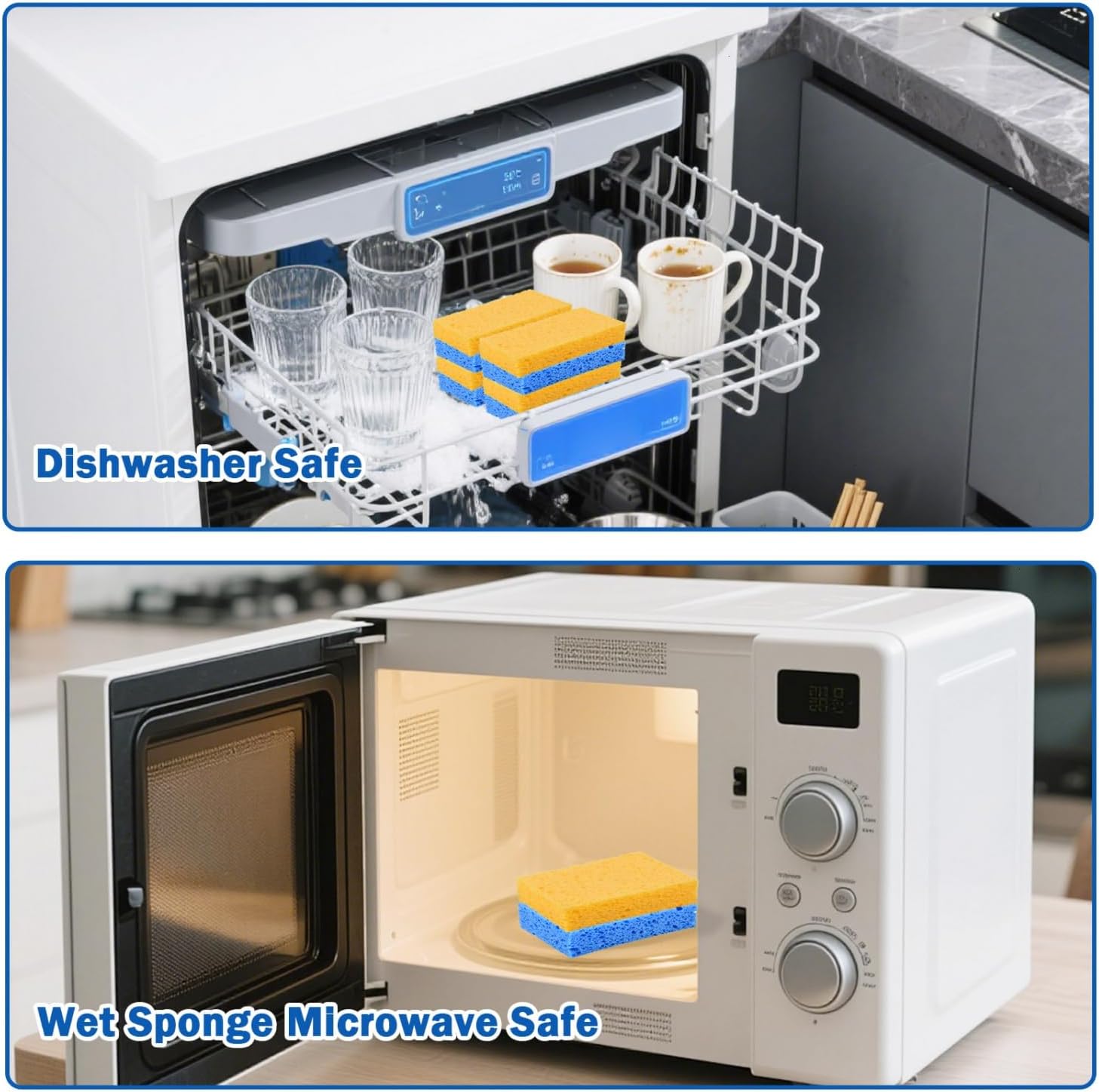 - Multiple Uses: The blue and yellow cellulose sponges kitchen great for cleaning pots, pans, dishes, countertops, stoves, tile, walls, and windows. Can effectively remove stubborn oil stains and dirt