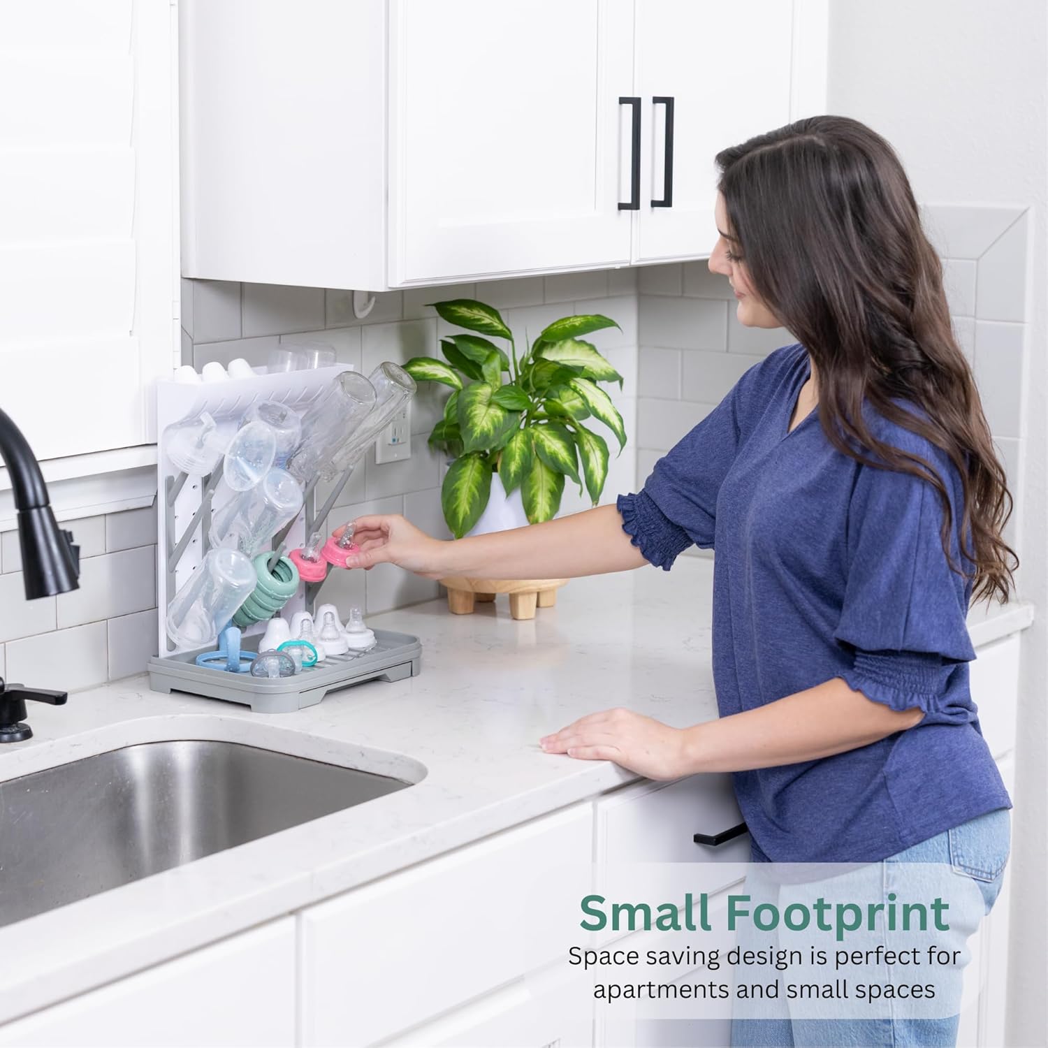 - ✅ Sturdy & Stable Base – Designed with a wide, anti-tip base to ensure your baby bottle drying rack stays firmly in place, even when fully loaded.