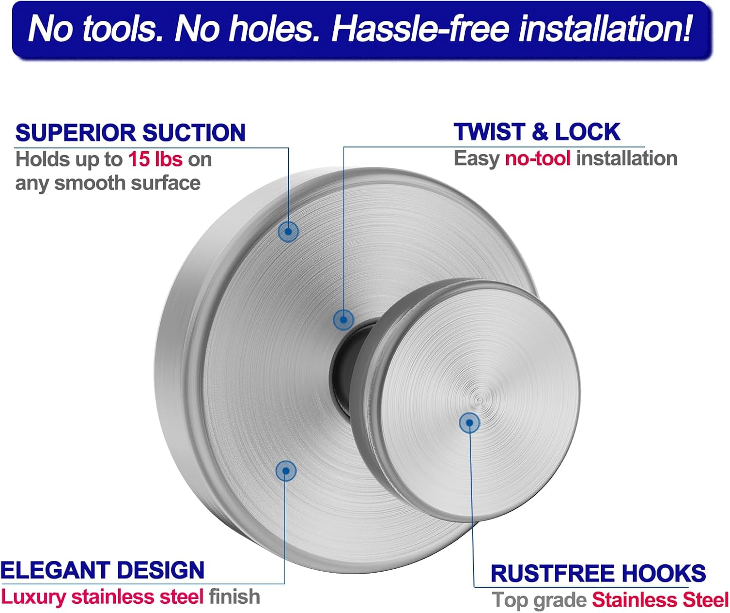 - [​Shower-Safe & Rustproof]: Stainless steel ​shower hooks + super TPU suction base withstand daily steam/water splashes. Removable without residue - ideal for renters' ​towel hook needs.