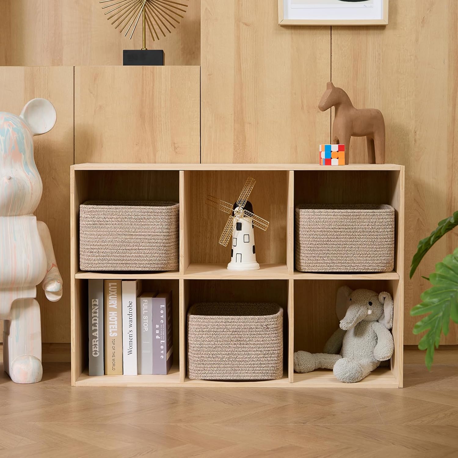 Small Organizing Baskets for Cubes Shelf, 9.7x9.7x7.1 Inch Rope Woven Storage Bins for Nursery Shelves Storage, Cute Toy Basket, Square 3 Packs Mixed Brown