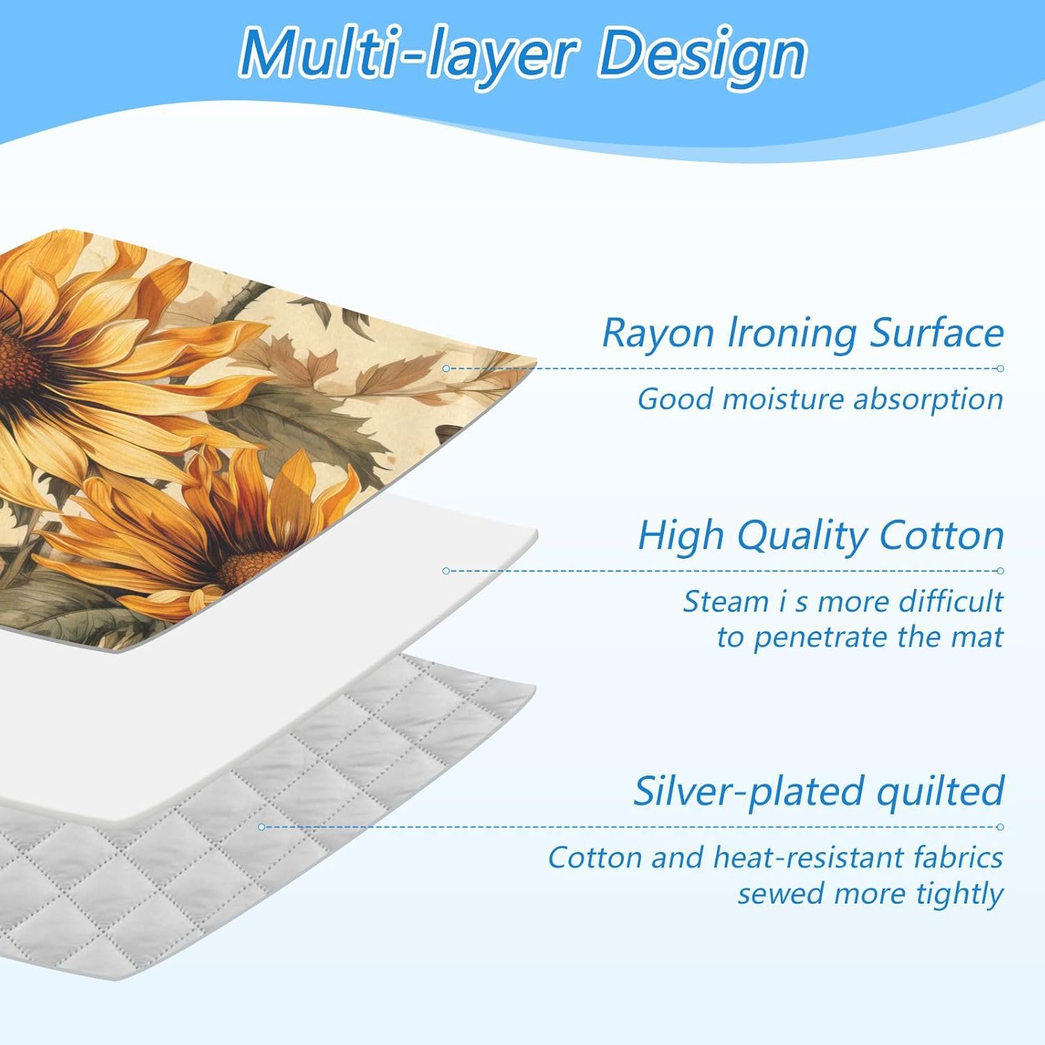 Retro Sunflowers and Butterflies Ironing Mat Thickened Ironing Blanket Travel Portable Double-Side Using Ironing Pad Travel Isolate Heat Pad Cover for Washer Dryer Table Top Countertop 27.6x47.