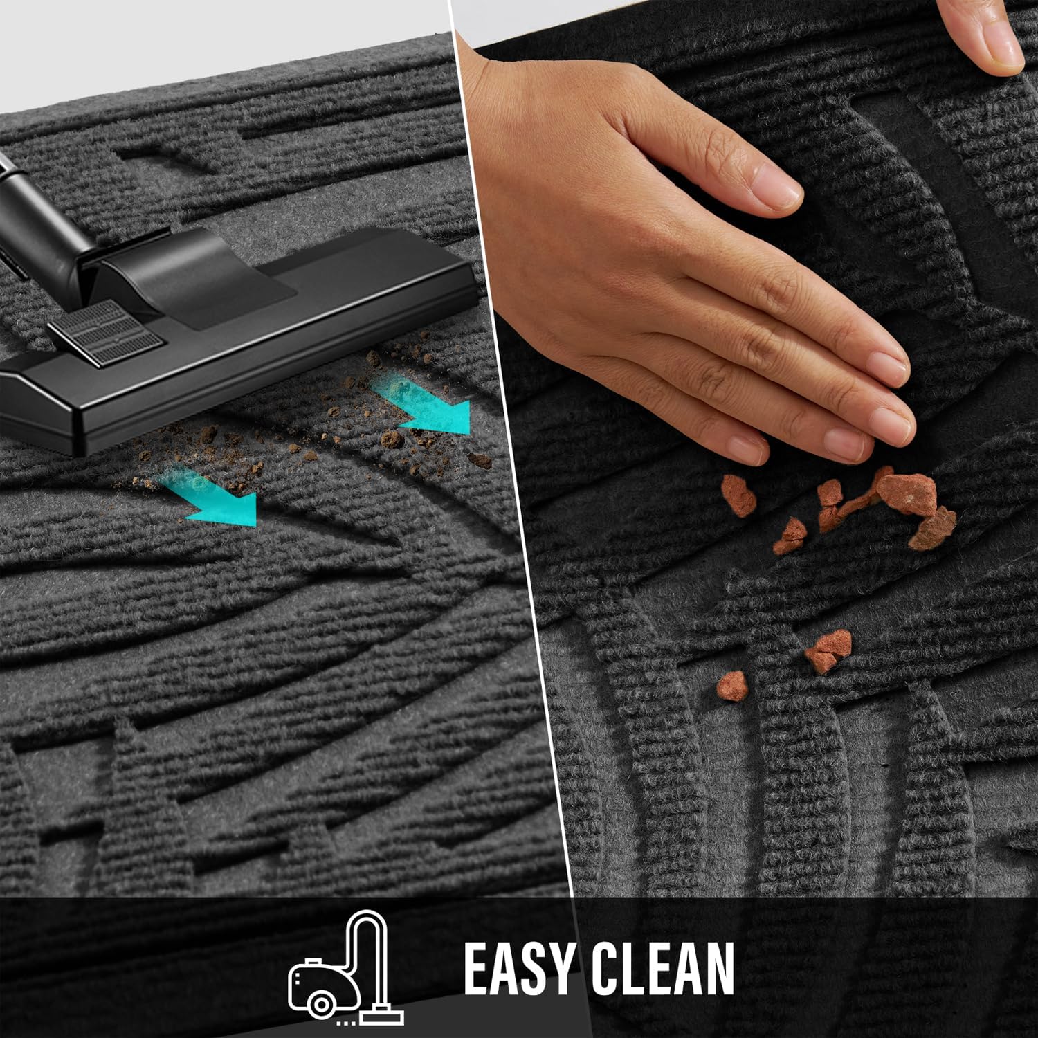 - Easy Clean: Front door mat indoor can be vacuumed or garden hose rinsed. Easy to sweep and shake off dirt, gravel, grass, sand, mud and snow from outdoor doormat. If you have any questions about welcome mat for front door, I will help you answer them as soon as possible. Give you a satisfactory solution