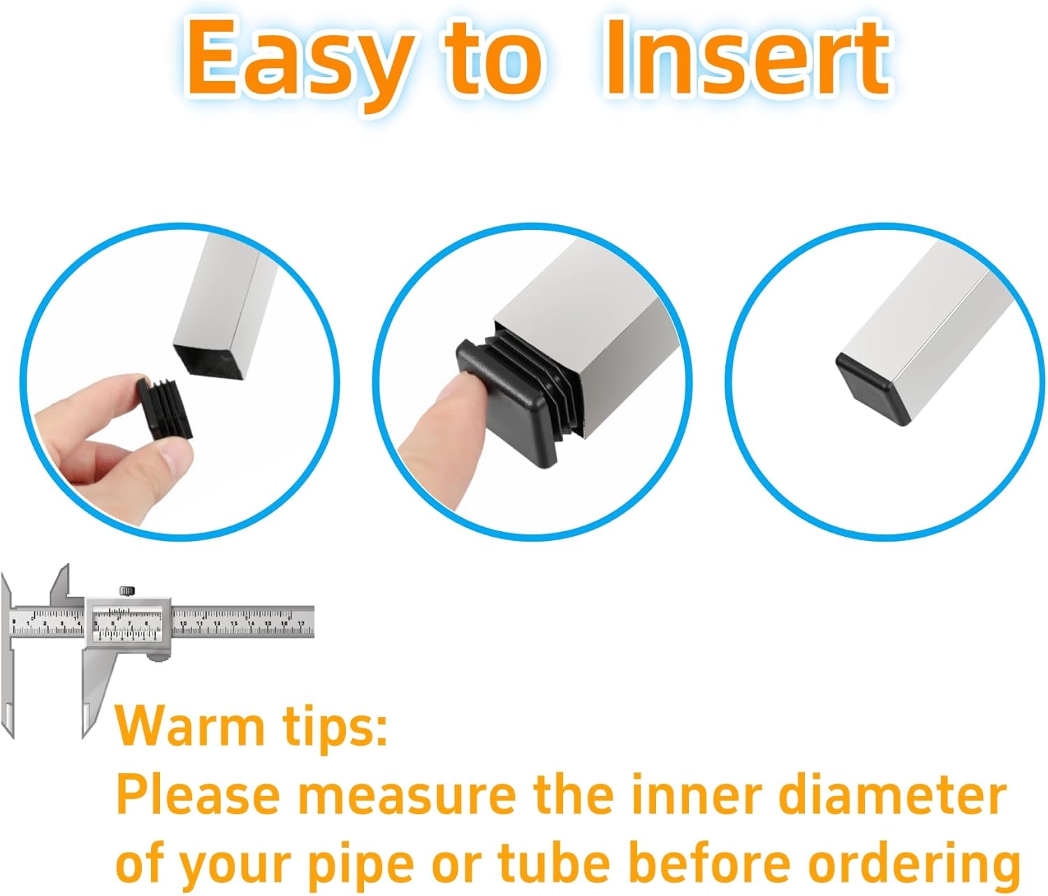 - Square Plastic Tubing end caps made by high quality plastic material and no odor smells๏ผ4.5mm thicken bottom, durable chair glide. Best furniture slider for carpet, moving easily. Chair leg inserts for metal legs, keeping securely