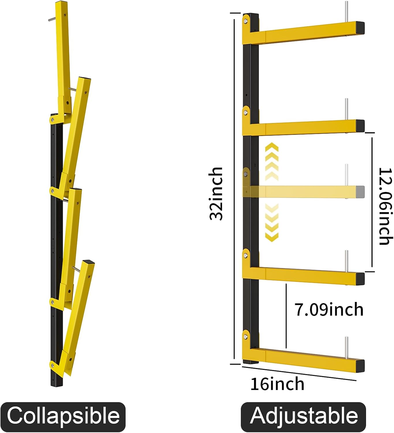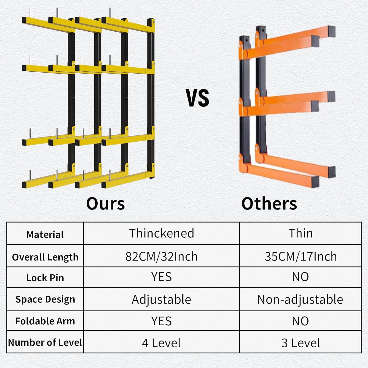 - VERSATILE ADJUSTABLE LUMBER RACK: Customize shelf heights to fit store skis, pipes, surfboards, tools, golf clubs, or lumber – all in one space-saving rack! Includes anti-slip locking pins to Prevent items from slipping.