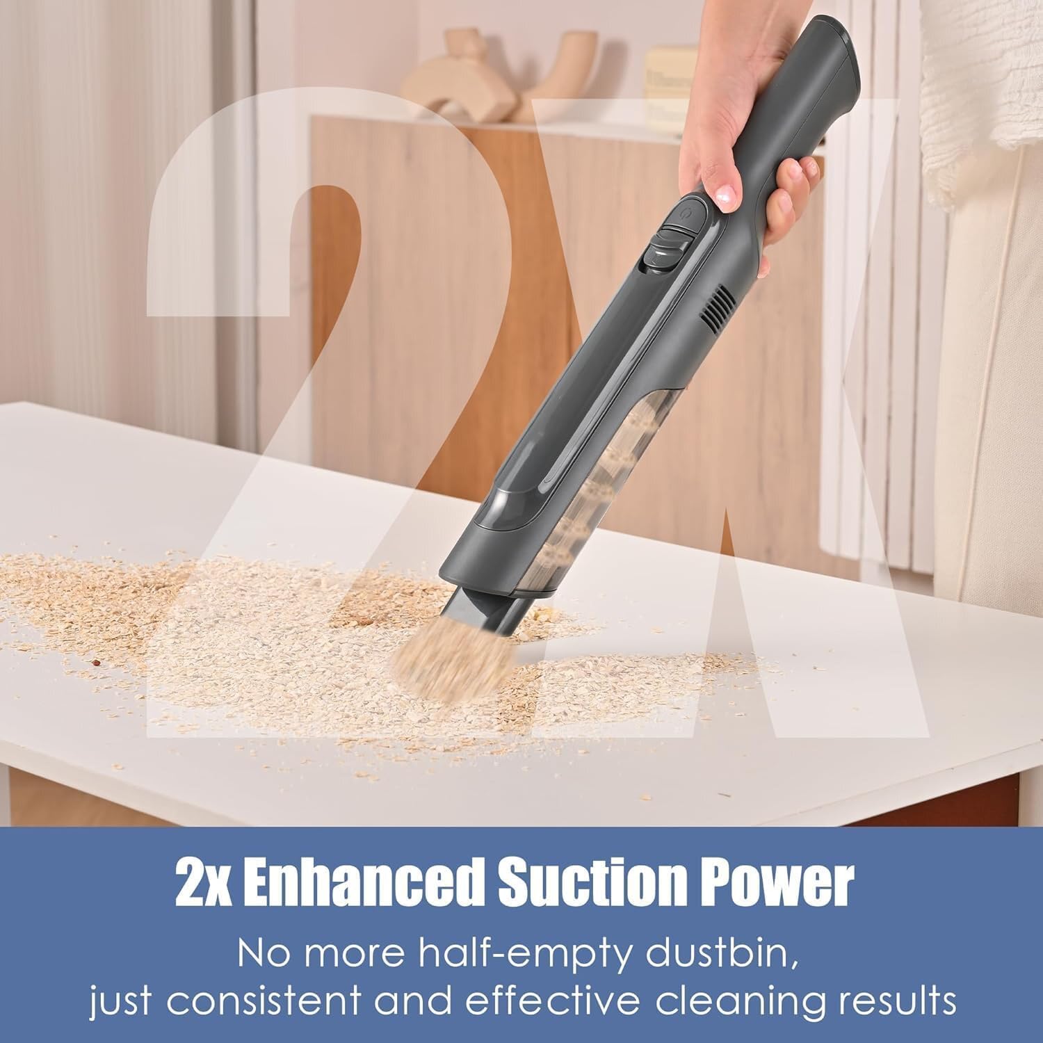 - 2025 Upgrade Exceptional Suction Power: Equipped with a true cyclonic filtration system, this handheld vacuum delivers unmatched suction power, making it perfect for tackling tough messes and debris in every corner of your home.