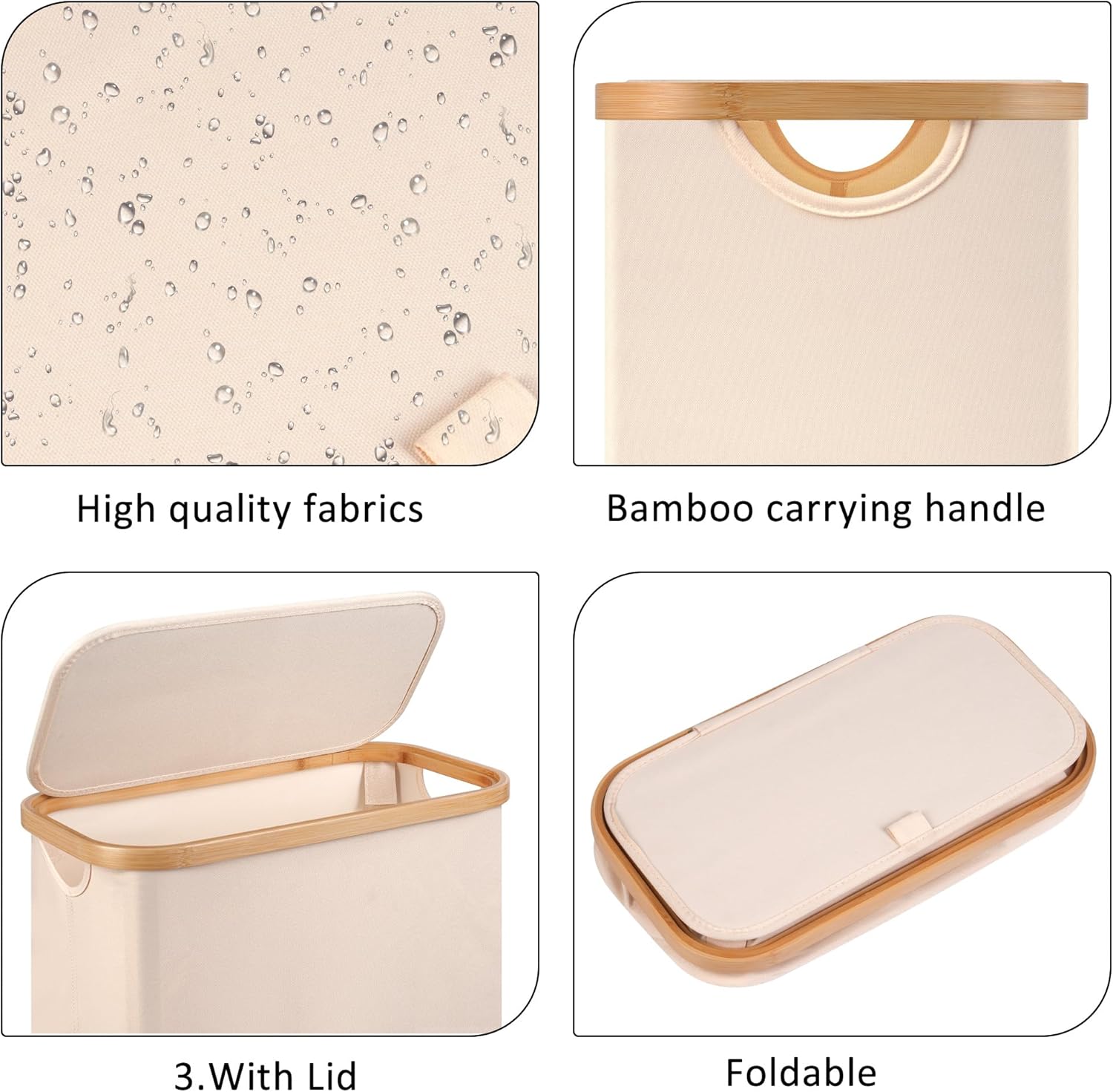 - 【Make Laundry Easier】 The bamboo handle is smooth and will not damage your hands during use. The lid of the laundry basket is designed to prevent odor diffusion, providing you with a clean environment. It offers more capacity for storing and organizing your clothes, helping you maintain a clean and tidy home or dormitory.