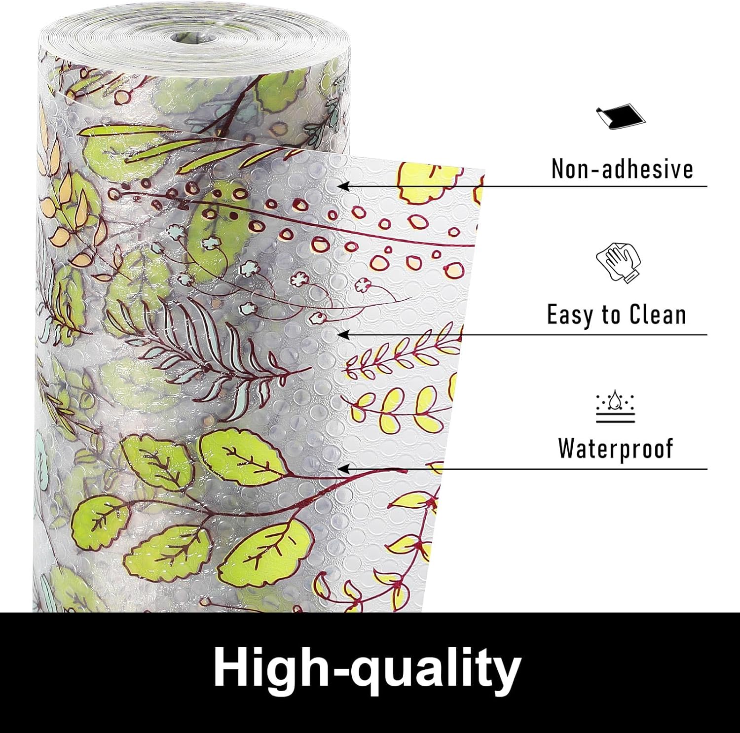 - High-Quality Shelf Liner: As the cabinet liners are composed of food-grade, safe EVA, they can come into direct contact with fruits and vegetables. They also provide an anti-slip function to stop collisions and damage, and they shield refrigerators, cabinets, shelves, and drawers from scratches