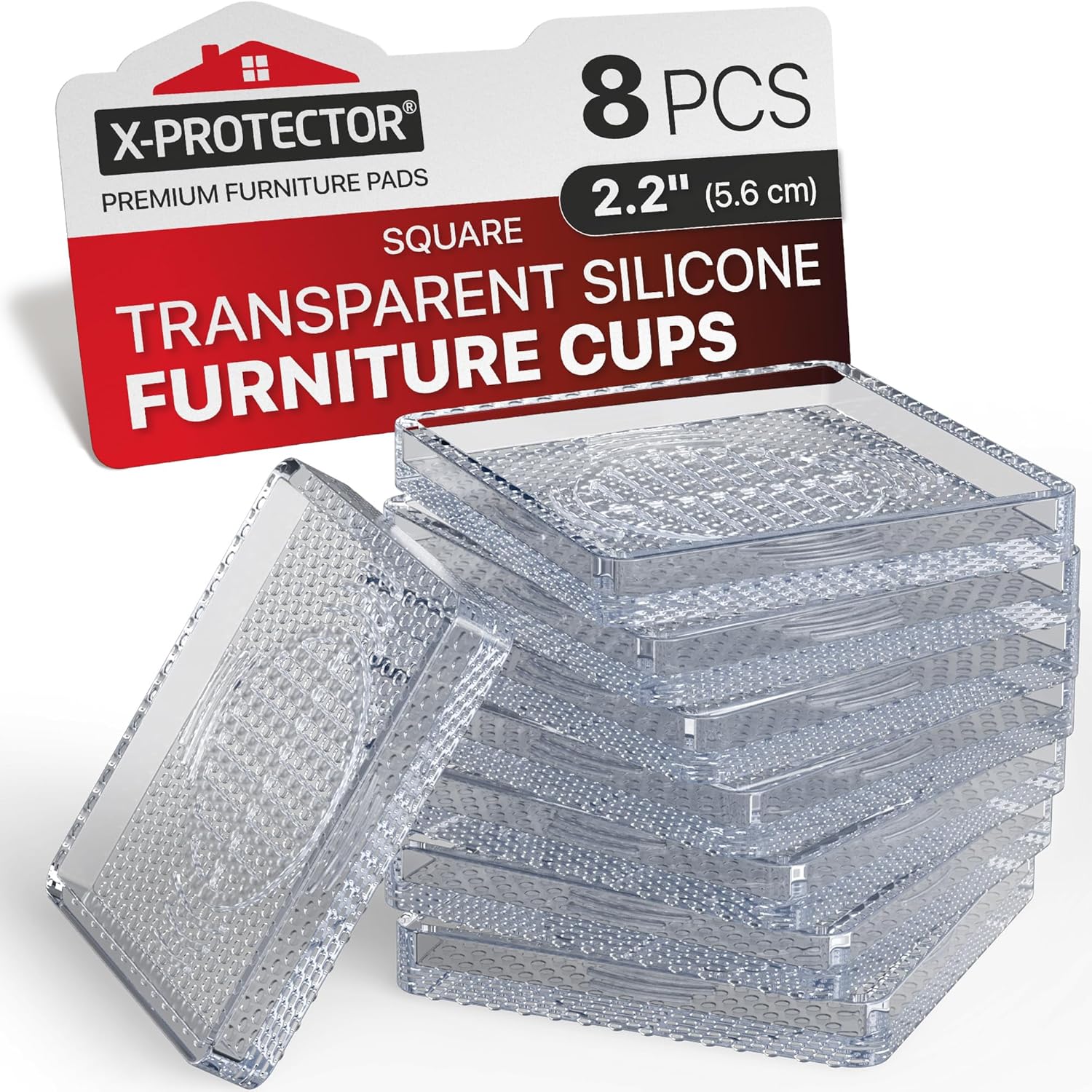 X-Protector Furniture Cups - 8 PCS 2.2" - Non Slip Furniture Pads for Hardwood Floors - Transparent Floor Protectors - Bed Stoppers to Prevent Sliding - Keep Furniture from Sliding on Floor! (Square)