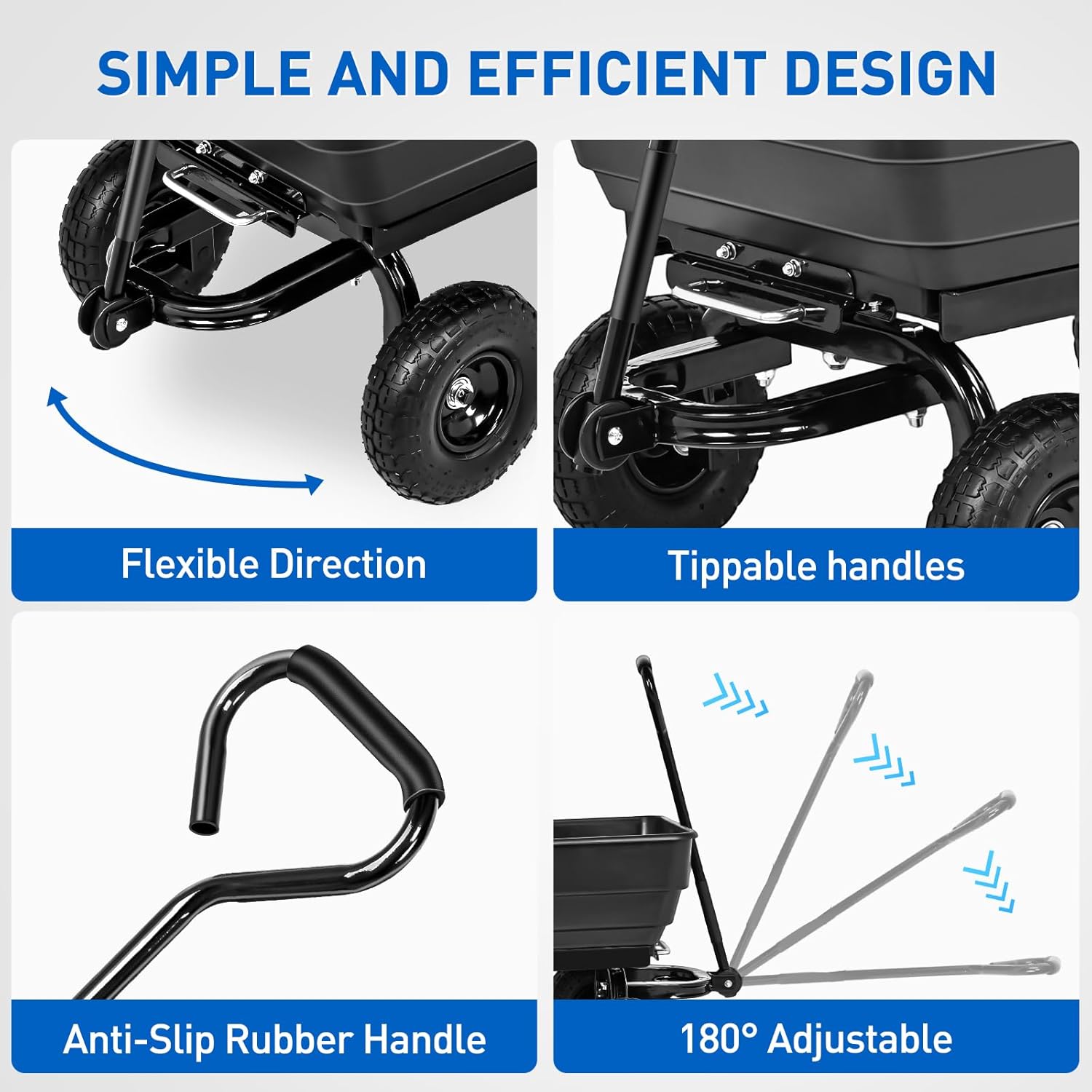 - Quick-Release Dumping โ Easily unload heavy materials in seconds with a simple lever pullโno lifting or hassle