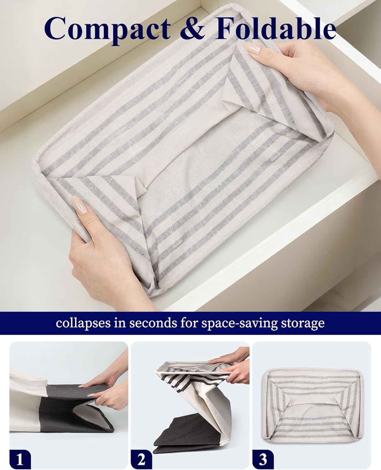 - EASY TO FOLD: Built with a collapsible design, this hamper folds flat for effortless storage. Its compact shape slides easily into tight spaces such as closets or drawers. It adapts to various settings and is easy to use as an RV essential and hamper for bedroom or dorm, making your laundry collection simple.