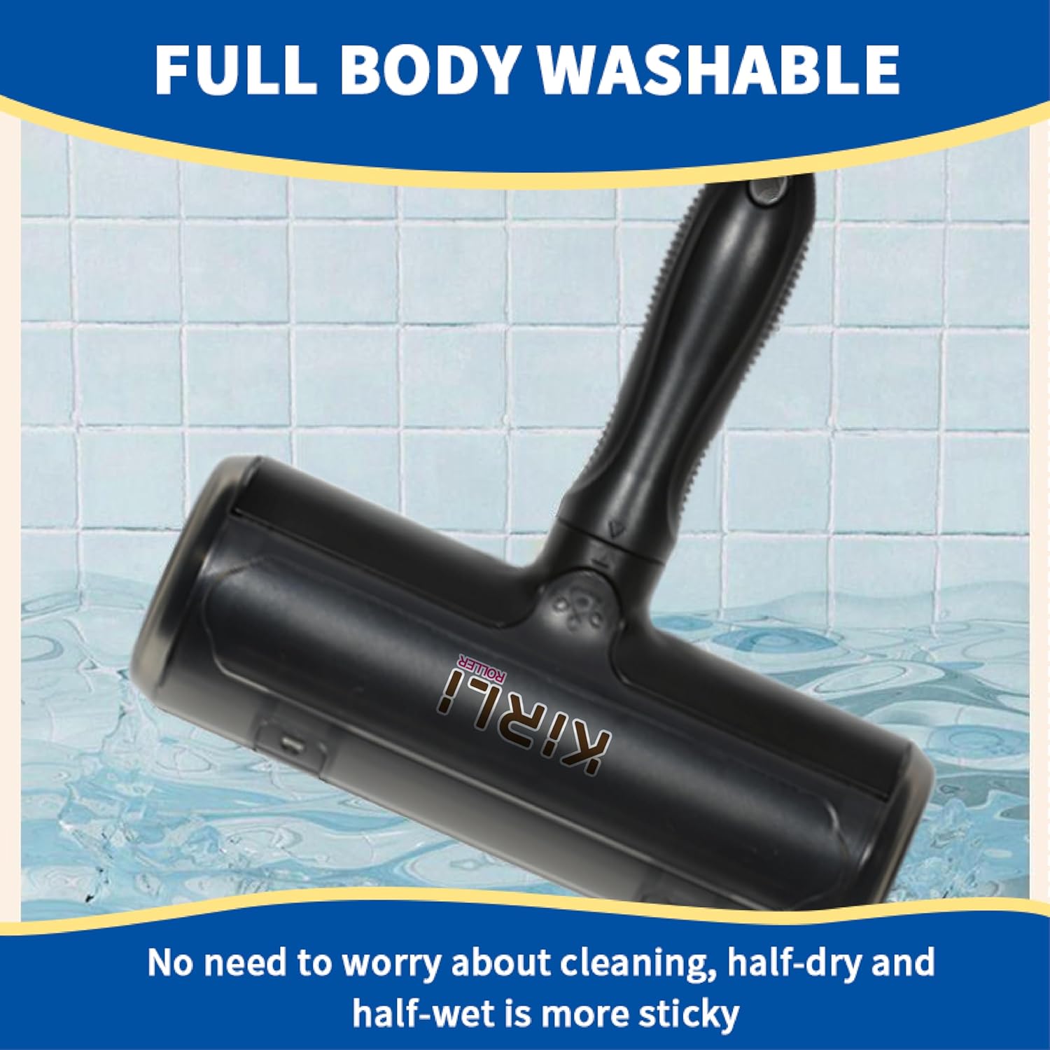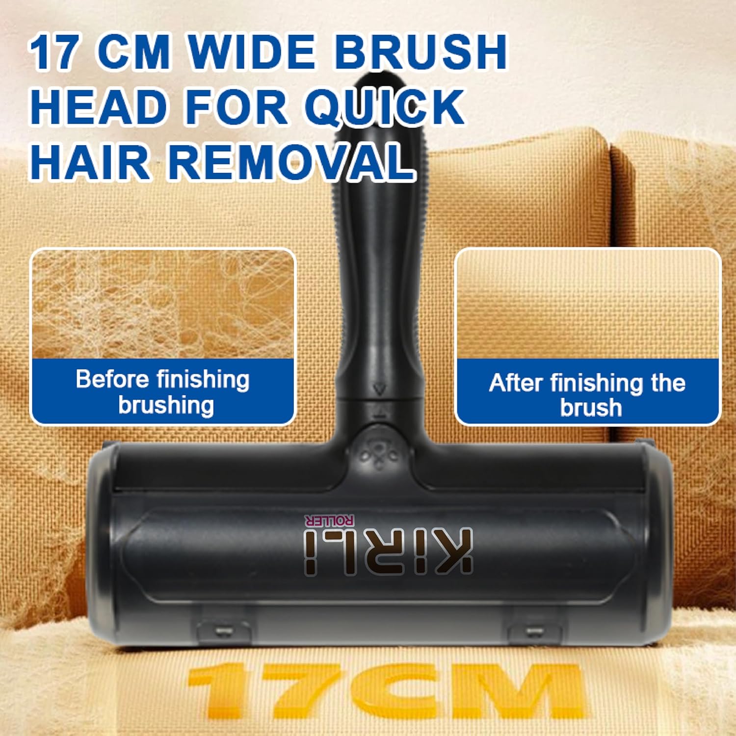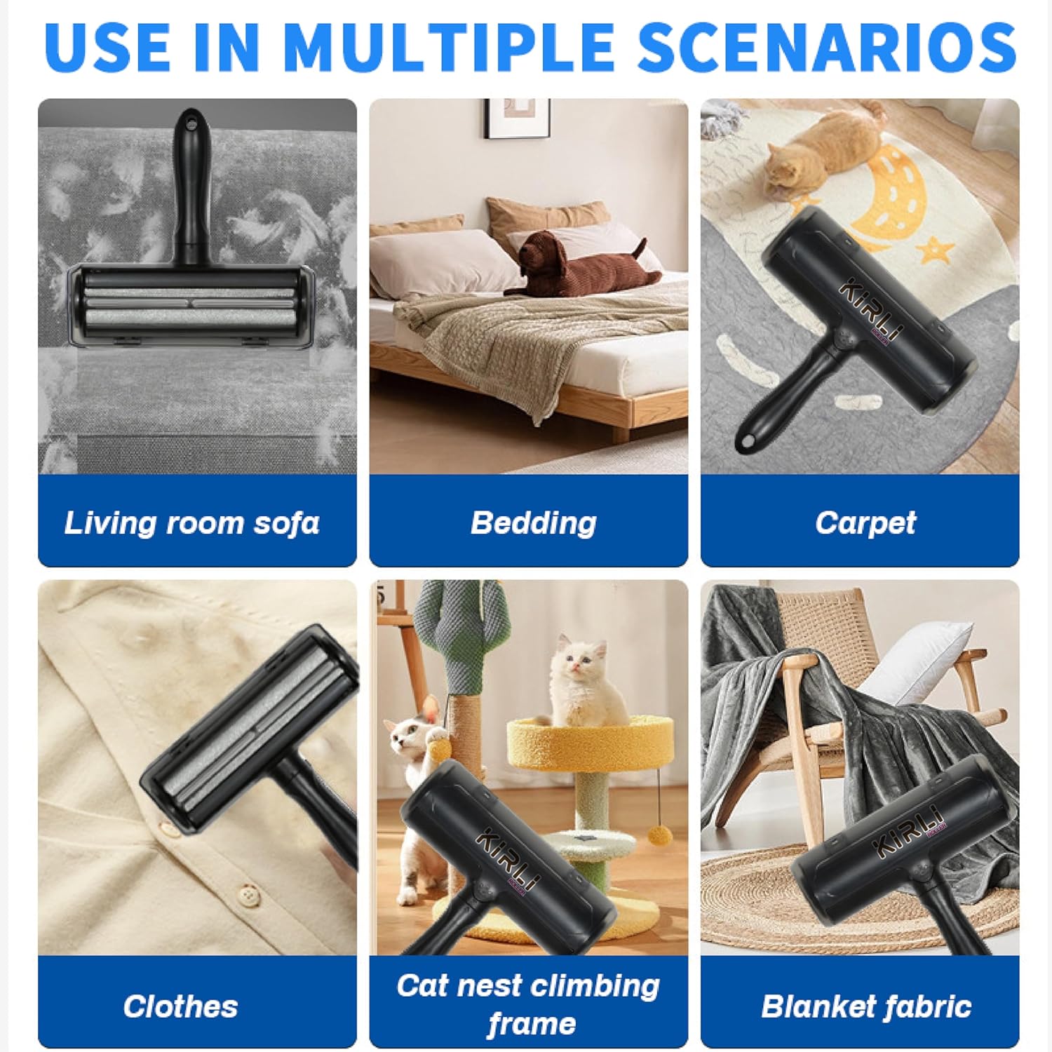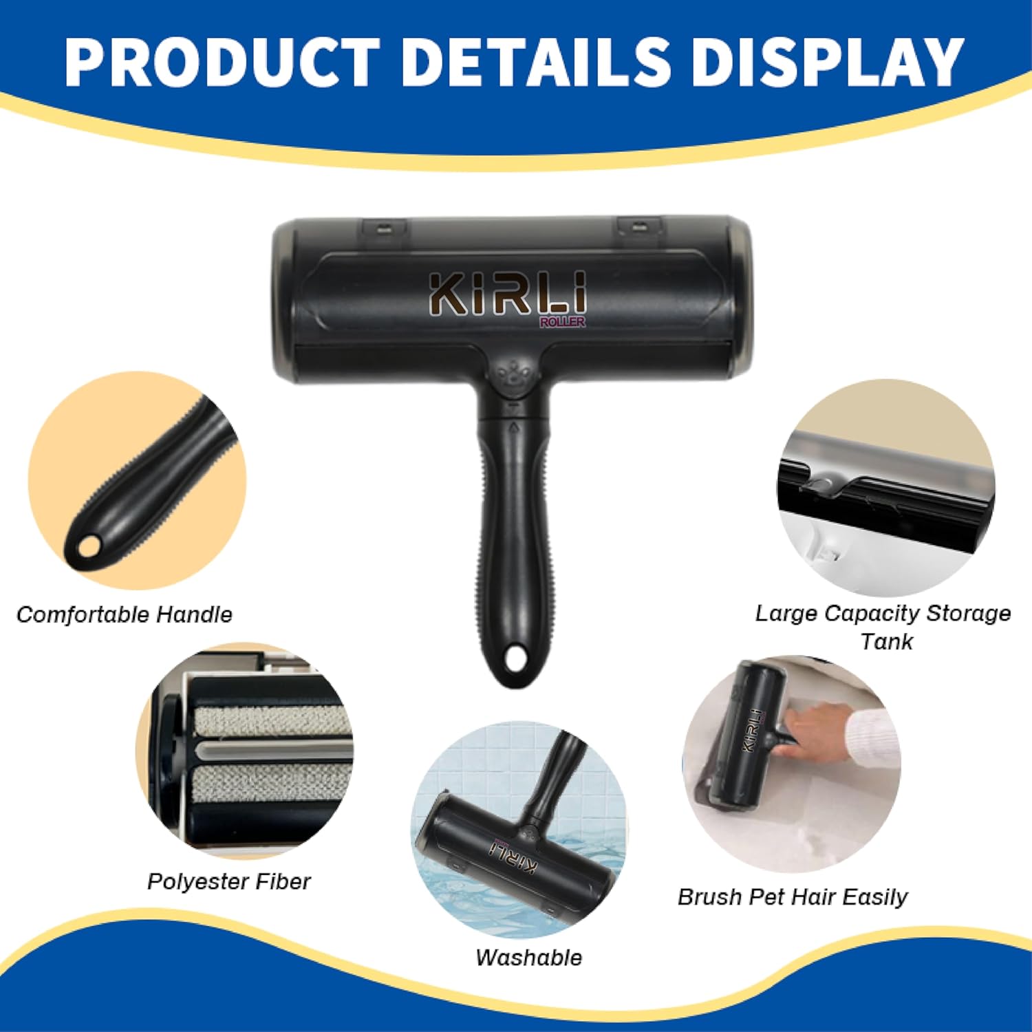 KIRLI Pet Hair Roller, Fur Remover Tool with Built-in Fur bin, Reusable Lint Roller for Pet Hair, Multi-Surface Furniture Clothing, Couch, Carpet, Bedding Cat and Dog Hair Remover (Black)
