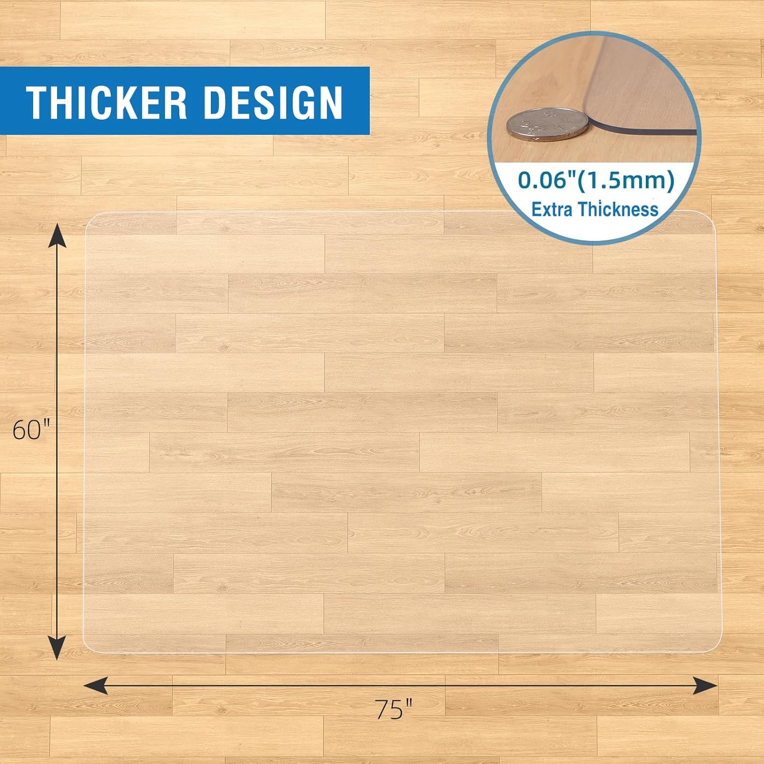 - Thicker for Enhanced Strength: Thickness: 0.06" (1.5mm); The added thickness of this chair mat enhances its strength, making it more resistant to wear and tear. It ensures long-lasting performance in high-traffic areas.