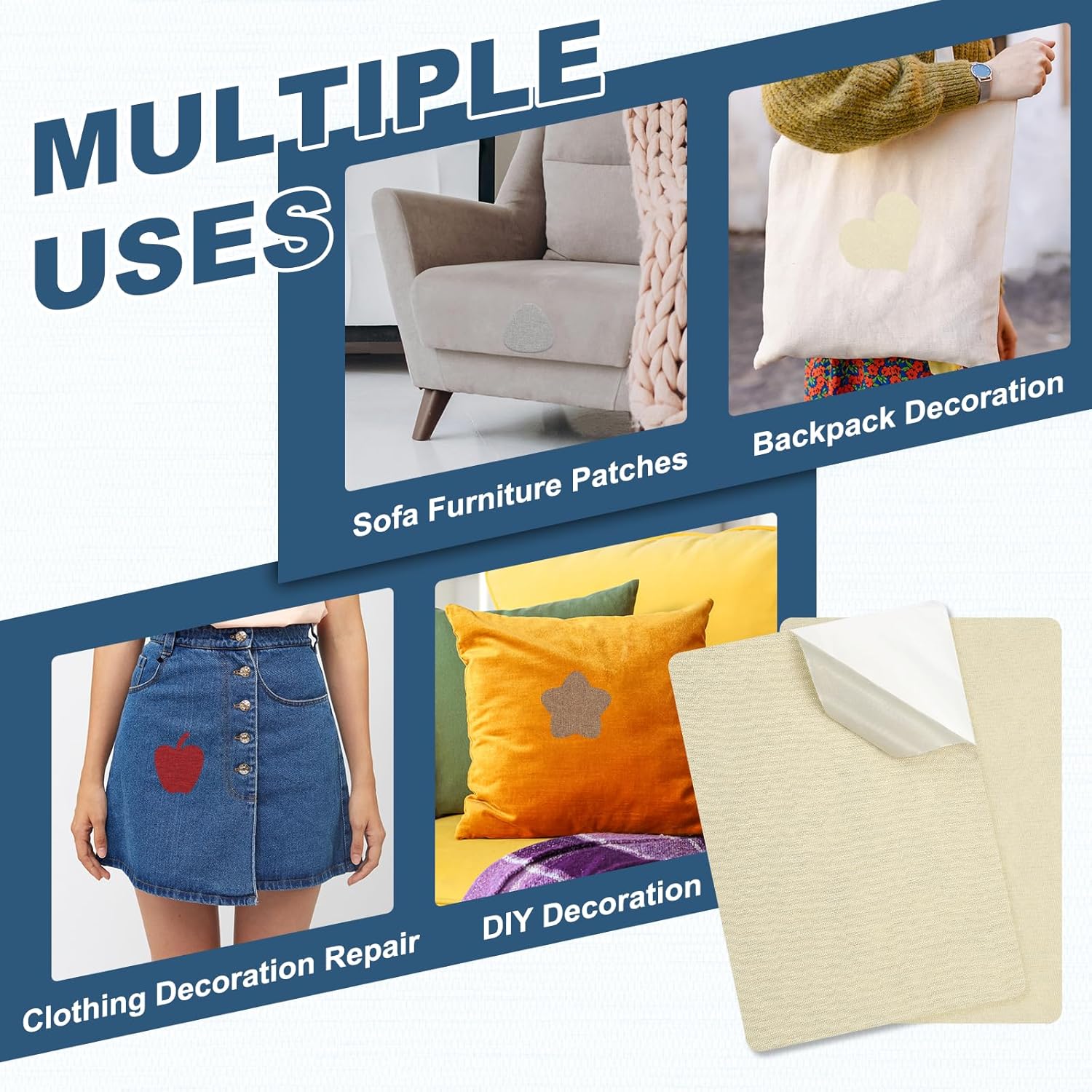 - Advantage: Our fabric repair patch tape is crafted from durable linen fabric, featuring an easy peel-and-stick design with a soft touch. Fabric patches are resistant to pilling and shrinking, machine washable for multiple uses while retaining its adhesive qualities.