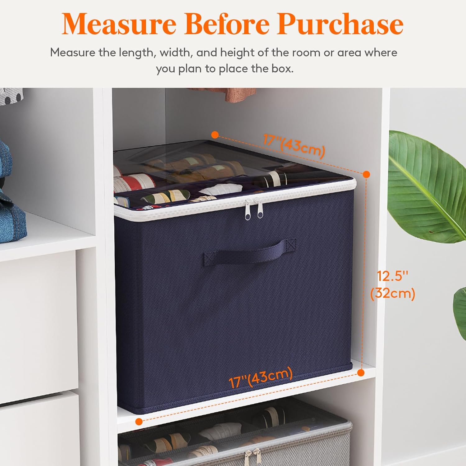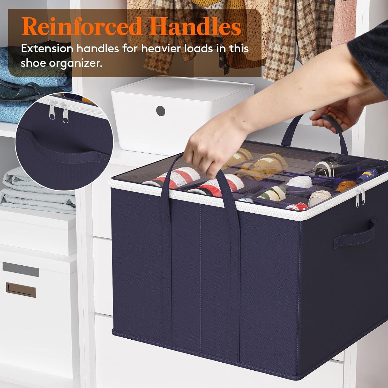 Lifewit Shoe Storage Organizer for Closet Fits 12-16 Pairs, Fabric Large Shoe Box Storage Containers with Clear Cover, Foldable Bins Fit for Boots Heels Sneakers 17"(L) x 17"(W) x 12.5"(H) 3 Pack Blue