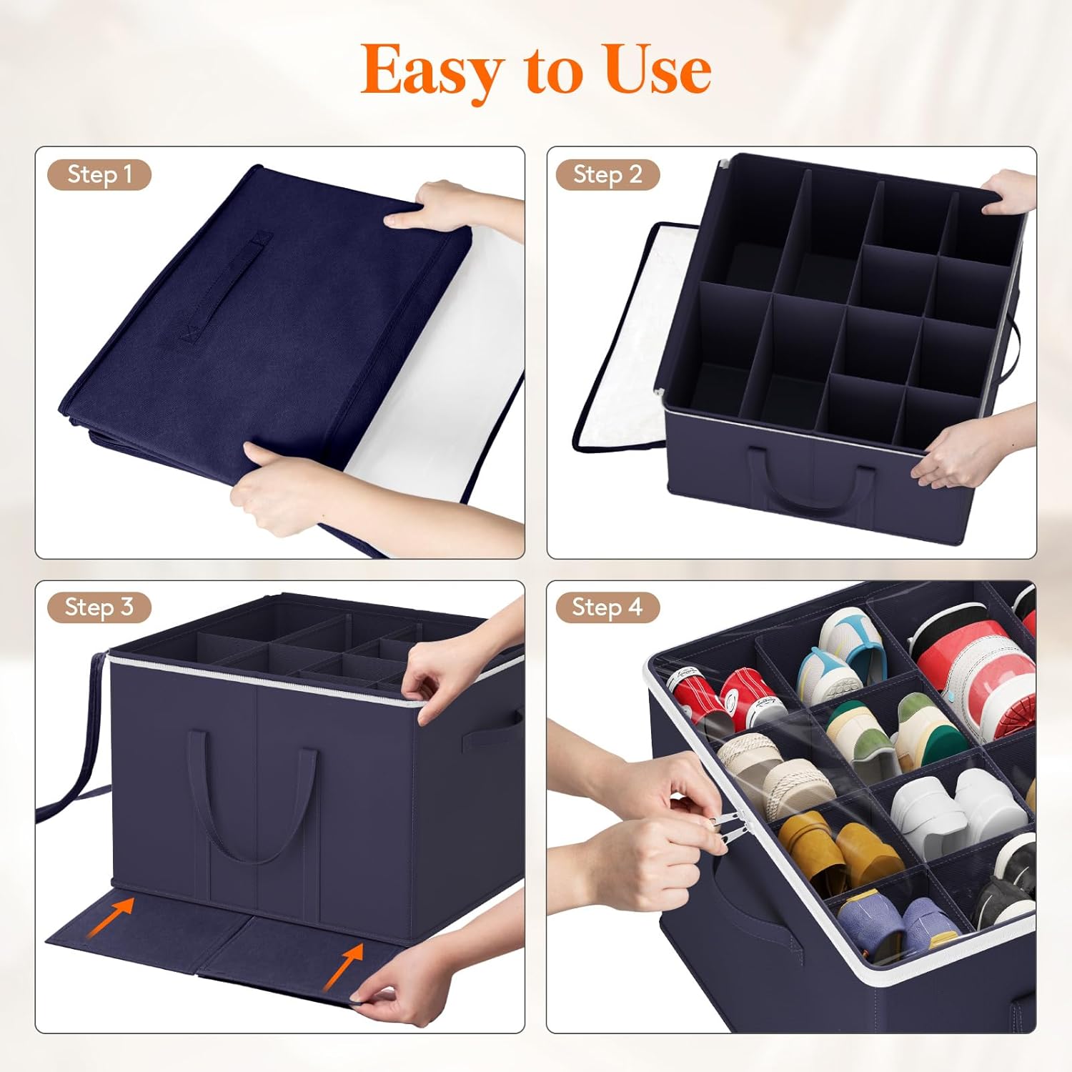 - Reinforced Structure: Crafted from non-woven fabric and reinforced cardboard, this shoe box features three sturdy handles for easy transport. Its robust side and bottom panels ensure shape retention under pressure, offering reliable long-term use