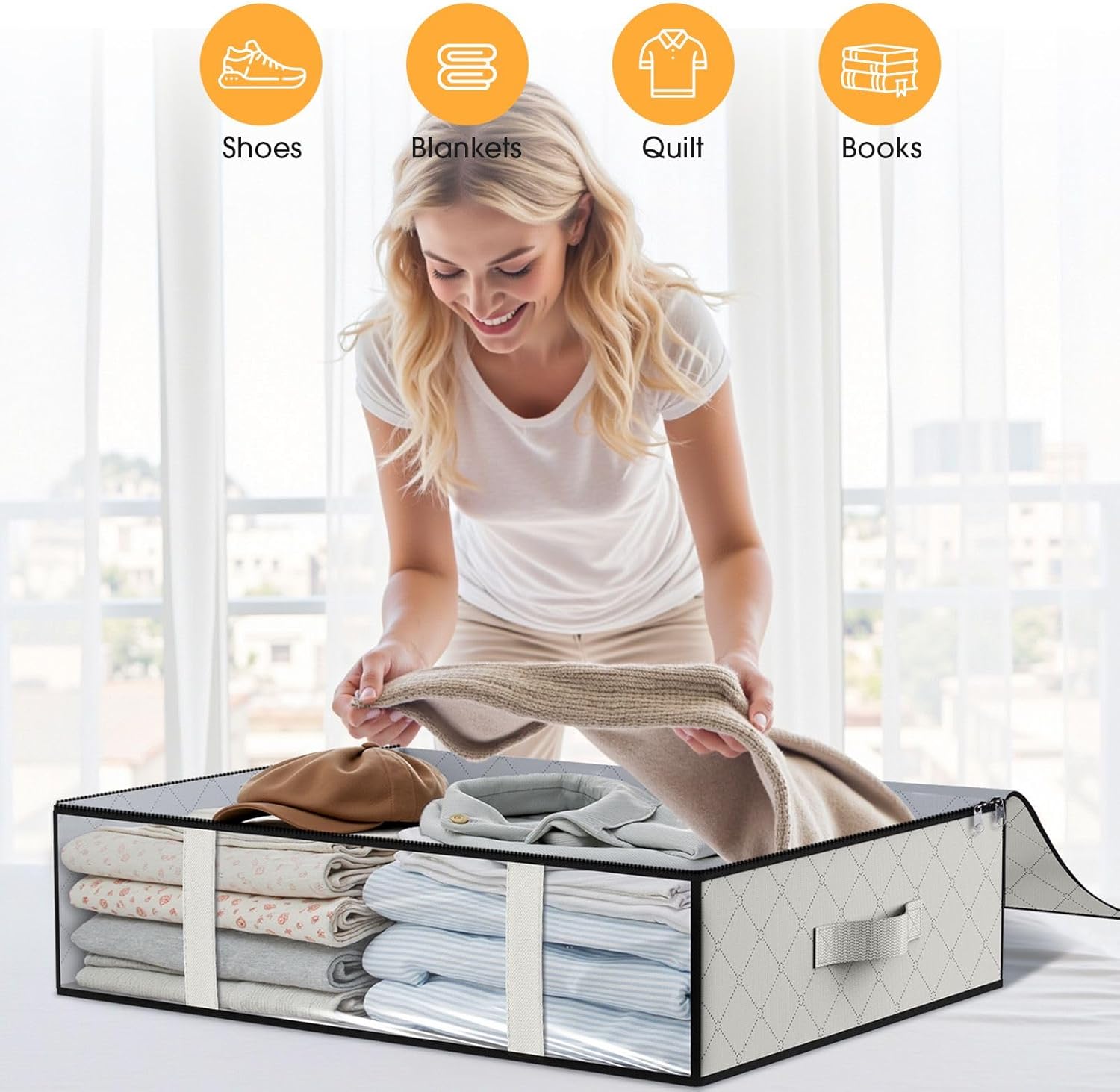 - Multifunctional Storage Organizer:StorageRight under bed storage containers for organizing fits perfectly under your bed. From blankets and pillows, to out-of-season clothes and shoes, to books! These storage bags have sturdy construction and can handle all types of storage needs