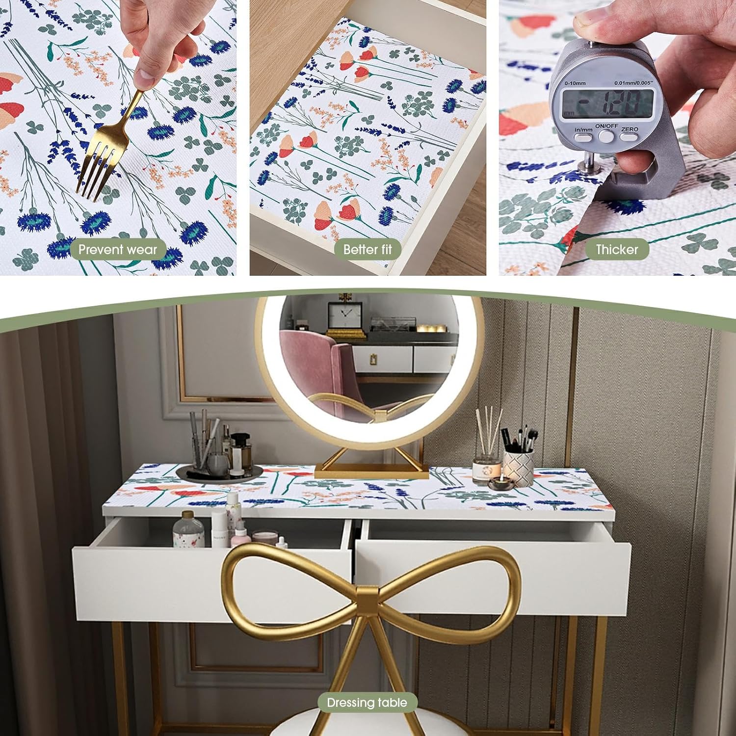 - Kitchen Drawer LinersăVersatile & StylishăEAQQWWY multi-purpose cupboard liner works virtually anywhere: use it as cabinet mat, drawer mat, shelf mat, closet mat, vanities mat, desk mat, tool chests mat... any flat surfaces protective lining.Ideal for kitchens, baths, bedrooms, offices, garages, dorms, pantries... solve slipping and clutter woes with one simple mat.Ditch dull drawers! Choose from our "Enchanted Floral or Botanical Bliss collections, featuring vibrant, fade-resistant printing. Instantly inject style and vitality into your storage spaces. Turn everyday organization into a visual delightâ make every open drawer a statement piece!