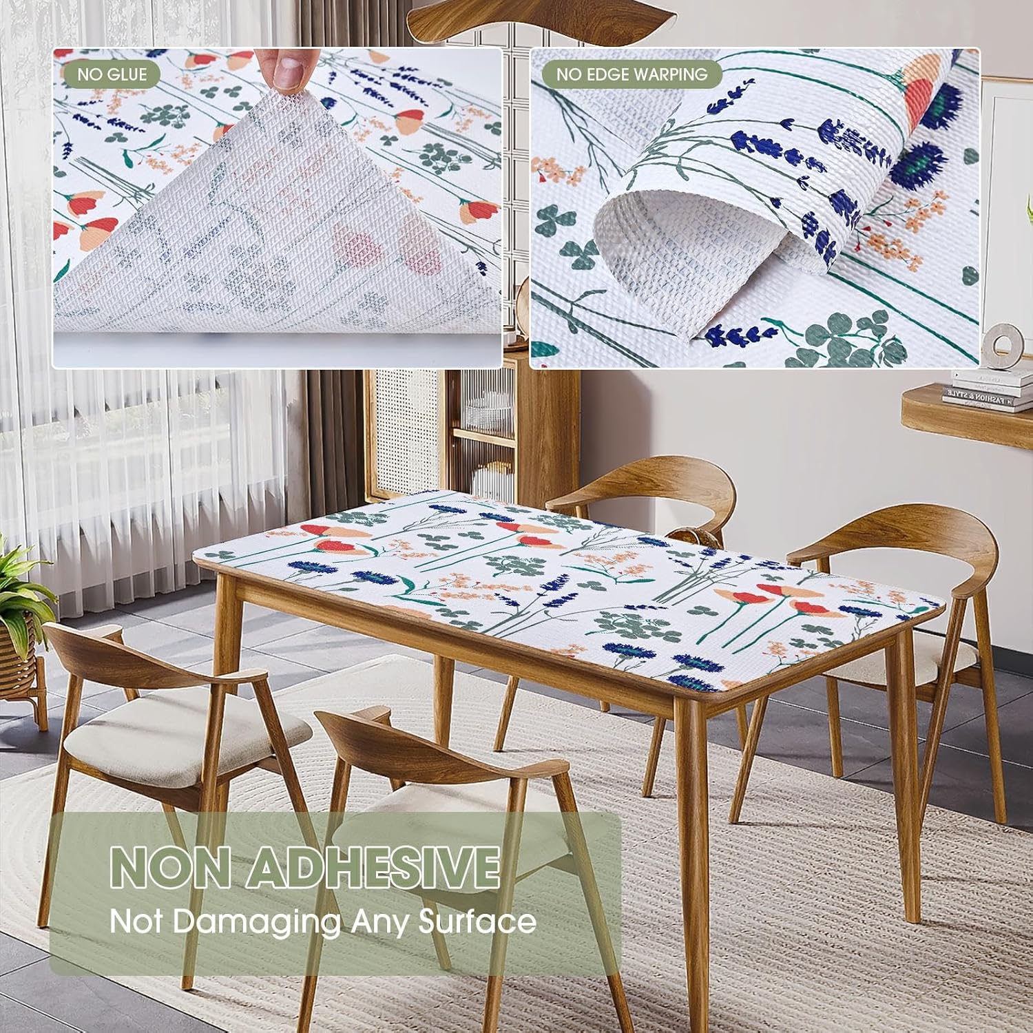- Floral Drawer LinerăNo Sticky Residue, Reposition FreelyăForget messy adhesives! This cabinet liner stays put through pure friction alone. No glue, no residue, no curled edges! Easily lay it down, adjust it, or remove it without damaging any surface ,perfect for renters or cherished furniture.